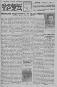 Пролетарии всех стран, соединяете сь ТРУ Д и Районного Совета ! депутатов трудящихся Алтайского края Выходит 2 раза в неделю цена номера 7 коп, 25 МАРТА 19 }2 г. Среда М 18 (779 )'J. Колхозники и колхозницы, рабочие и работницы МТС и совхозов! От вашей работы зависит снабжение фронта и тыла хлебом, мясом, овощами, всеми сельскохозяйственными продук тами. Образцово подготовимся к весеннему севу! Обеспечим новый мощный под*ем социалисти ческого животноводства! Советские КОЛХОЗНИКИ и партизаны Двух районов Ленинградской области, захваченных немцами, написали письмо товарищу Сталину. Оно было прочитано и обсуждено на тайных собра ниях, в лесу, в землянках. Свыше трех тысяч колхозни ков и партизан подписались Под этим письмом. Они знали, Ито подпись означала бы смер тельную опасность для каждого, «ели бы тетради, в которых было письмо и подписи, попа ли в руки немецких оккупан тов. Советские патриоты знали это и, не колеблясь, именами своими скрепляли то пламен ное чувство любви к родине, любви к Сталину, которое бы ло выражено в письме. Сообщение об этом замеча тельном документе советского патриотизма мы печатаем се годня в «Правде». Партизаны и колхозники вре менно оккупированных немца ми районов Ленинградской об ласти так начинают свое пись мо: «Дорогой Иосиф Виссарионо вич! Пламенный привет шлем " а м, любимому отцу и учителю нашему, мудрому полководцу. Пусть эти простые слова прой дут через линию фронта, дос тигнут стен Кремля, возвестят 0 Делах и чувствах советских граждан, временно попавших Ио Д фашистское ярмо». Дорогие братья! Ваши слова, Проникнутые беззаветной лю бовью к матери-родине, прош- Ли через линию фронта, они Л °стигли стен Кремля, они ста нут достоянием всего нашего народа, они дойдут до свобод ных народов всего мира, веду щих борьбу с немецко-фашист- Ск ими захватчиками, они ста нут известны народам, кото рые, как и вы, томятся под Фашистским игом, ведут непри миримую борьбу и твердо ве- Рнт в свое недалекое освобож дение. Дорогие братья! Ваши дела ’ чувства наполняют великой ^РДостью сердце каждого со тского патриота. Парод, как еличайшее сокровище, сохра- Ит простые школьные тетради, в к °торых записаны ваши свя тые чувства и ваши великие Дела. Письмо колхозников и пар тизан двух районов Ленинград кой области раскрывает за несу над этими частями совет- ной земли, временно попав- ’ ей в лапы фашистского хищ- ика-зверя. Он хвастает тем, то занял эту землю. Да, он ^ходится на этой земле. Об •том говорят страшные и смер тельные следы его преступ- еиий. Немцы-фашисты уничто- или лишь за одну неделю 39 Деревень, сожгли 486 домов, Школ > ~ больницы. Они в ст Реляли 107 колхозников, Детей ЧИСЛе женщин ’ ста риков, Своими зверскими преступле ний немцы-фашисты пресле- )гда не оу; а за 16 марта 1942 го\ ■рают по селам, вывозят к ли нии фронта, чтобы доставить в Ленинград, Части Красной Ар мии обеспечивают доставку это го подарка, ценность которого неизмерима, в город, дорогой каждому советскому человеку. Навсегда останется в памяти волнующая картина этих 200 подвод, которые по глухим до рогам, с величайшей опасно стью для. жизни возчиков, без вестных колхозников, везут продовольствие для братьев в Ленинград. Дорогие товарищи! Ваши име на, запечатленные в тетрадях с письмом товарищу Сталину, пока безвестны. Но придет мо мент, — он уже близок, — когда вся страна уз
