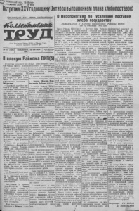 (од 3 А Рлинский пер., 13 Всесо- “ ■ ал . ате (4 «кэ Встретим XXV годовщину Октября выполнением плана хлебопоставок! Пролетарии всех стран, соединяйтесь! ТРУД Орга в Карасукского Райкома ВКП(б) » Районного Совета депутатов трудящихся Алтайского края № 39 (800h Понедельник, 28 сентября 1942 г. Цена номера 13 копеек II пленум Райкома ВКП(б) 22 сентября состоялся II пле нум Райкома ВКП(б). Пленум обсудил следующие вопросы: «О мероприятиях по усилению поставок хлеба государству» (докладчик -- секретарь РК ВКП(б) т. Полянский), и вто рой вопрос — «О росте рядов ВЕП(б) и работе с молодыми коммунистами» (докладчик т. Кайгородев). бовала резко повысить требо вательность к председателям колхозов и руководителям МТС в организации четкой и беспере бойной молотьбы и вывозки хлеба по-военному. О мероприятиях по усилению поставок хлеба государству Постановление II пленума Карасукского Райкома ВКП(б) от 22 сентября 1942 года — Первейшей задачей по важ ности и по своему военно-хо зяйственному значению являет ся сейчас стоящая перед рай оном задача — полностью и в срок выполнить основной долг перед родиной и фронтом — сдача хлеба государству, — зая вил в своем докладе т. Полян ский. ° тех колхозах, где пони мают это и сделали Лолк- шевистские выводы, — план хлебозаготовки решается с успехом. КолЛЕш «Муравей ник', «Пятилетка», «Интер национал» и ряд других— при ближаются к завершению хле бопоставок. Однако, заявил докладчик, район в целом еще позорно отстает в хлебопоставках. Ряд колхозов грубо нарушили решение партии и правительства об уборке п госпоставках. Так, в колхозах «Жол Сталина», им. Андреева и других вывоз хлеба государству начался лишь на 30-35-й день уборки. Это — преступление перед родиной и фронтом. Колхозы «20 лет Октября», «17 партс : езд», «Красный фрон товик», «Память Чкалова», «Ясный луч», «Жол Сталина», «Жана-Курлыс», «Красный вы селок», не сдавшие и по 100 центнеров зерна, позорнейшим образом тянут район назад, а их руководители скатываются на явно антигосударственный путь, проводят саботажниче ские действия в деле хлебоза готовок. Ни одного дня нельзя более терпеть подобное поло жение. Тов. Полянский в своем докла де наметил четкий план борь бы за немедленное исправле ние ошибок, за большевист скую организацию молотьбы и хлебопоставок. Выступивший в прениях предрайие.цолкома т. Ченцов вскрыл ошибки и подверг су ровой критике партийных и беспартийных руководителей, Допустивших позорные упуще ния в хлебосдаче, и предложил ряд конкретных мер для того, чтобы резко ускорить хлебо сдачу государству. Пред. Чернокурьинского сель- исполкома т, Свивнко, потре- В прениях по докладу тов. Полянского выступили также т. т. Буслов, Манчха, Кора бельников, Дыбцева и другие. И пленум Райкома ВКП(б) подчеркнул, что обмолот и хле босдача — решающий, боевой участок сельскохозяйственного фронта,что работать по-фрон- товому на этом участке, — зна чит уничтожать фашистских ша калов, и что у коммунистов и колхозников района нет сейчас более важной задачи, чем вы полнение всех обязательств перед государством. В докладе по 2-му вопросу — О росте рядов ВКП(б) и работе с молодыми коммунистами — т. Кайгородев дал четкую кар тину роста парторганизаций района и работы коммунистов с активом. В числе передовых по приему в партию, доклад чик отметил парторганизацию Хорошевской МТС, принявшу