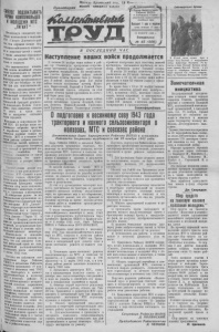 ° мелее подхватывать ПОЧИН КОМСОМОЛЬЦЕВ и МОЛОДЕЖИ МТС „ГИГАНТ “ Неоценимую инициативу про били комсомольцы и молодежь ‘ ‘ С «Гигант» Локтевского рай- ° На -0ни первыми начали сбор сельскохозяйственного инвента ря и запасных частей с полей, а также наведение образцового п °Рядка на усадьбах МТС, кол хозов и совхозов. Эта замечательная инициа ла нашла живейший отклик с Реди комсомольцев и несоюз- н °й молодежи нашего района, комсомольская организация кол хоза «20 лет Октября» за пер- ВЫе три дня комсомольско-мо лодежного двухдекадника соб" ₽ а ла полностью весь сельскохо - явственный инвентарь и за" васные части. Молодежно-ком - с °мольской бригадой руководи ла комсомолка Полина Гонча ренко. Весь инвентарь очищен снега и грязи сма- За н и аккуратно составлен в озле кузницы. Молодежь и комсомольцы Бе лой Мгс 25 ноября после мо лодежного собрания сразу же к нерабочее время в органи зованном порядке пошли на Усадьбу МТС и в течение 5-6 ч асов работы собрали десятки <«Авп».„ чх част ей, привели в аккуратно составили Л и тракторный ин- комбайны. Все • ‘ ‘ ДШияу чищаются от гряш п. , тся. Это намно- ■ < и ускорит темпы Москва Арлинский пер., 18 Пролетарии ю,ной • “ •«««□» «мате 30 НОЯБРЯ 1942 г. Понедельник 45 (806) J В ПОСЛЕДНИИ ЧАС Наступление наших войск продолжается В течение 26 ноября наши войска в рай оне гор. Сталинграда, преодолевая сопротив ление противника, продолжали наступление на прежних направлениях. На северо-запад ном участке фронта наши войска заняли населенные пункты Красное Село и Генера лов. В районе излучины реки Дон наши войска заняли населенные пункту Калач- кин, Перепольный, Верхний и Нижний Гера симов, Верхний Акатов, отбросив на этом участке остатки частей противника на восточ ный берег реки Дон. К юго-западу от Сталинграда наши войска заняли населенные пункты Ягодный, Скля ров, Ляпичев, Нижне-Пульский, Громослав- скпй.Дарганов. Южнее Сталинграда успешно О подготовке к весеннему севу 1943 года тракторного и конного сельхозинвентаря в колхозах, МТС и совхозах района Постановление бюро Карасукского Райкома ВКП(б) и исполкома Райсовета депутатов трудящихся от 25 ноября 1942 года. есклми делами под- ючин комсомольцев и МТС «Гигант» и ком- ,, совхоза «Культура». й Десь на всех фермах специально ^Данными бригадами также ^кончен сбор всего сельскохо зяйственного инвентаря, подвоз г о к кузницам и мастерским, и сожалению далеко не все г ° м сомольские организации по- Ядьшевистски подхватили при- п^н молодежи МТС „Гигант". ак ие секретари комсомольских ^ ’ анизаций, как в колхозах ‘ коллективный труд»-Таран II., ’ “ Уть Ленина» — Таран Е. и ‘ ‘ в Мая» — Поздняк, до сих пор < а »е не провели комсомольских герани й, не организовали бри- Ды по сбору и очистке сель- к °хозяйственного инвентаря, комсомольцы и молодежь Од хозной деревни должны по- Хь, что они являются боль- , Решающей силой на селе, Раванной по-большевистски Ялавлять ходом подготовки весне 1943 года. 1а ^ ег °Д н я мы публикуем пос- ВКП ВЛбНие б ю Р 0 Райкома Деп и исполкома Райсовета Штатов трудящихся «О под- гол° ВКе к весеннему севу 1943 X a тракторного и конного м-ррХозинвентаря в колхозах этом И С0ВХ03ах района». В Ват Постан овлении.с исчерпы- ясностью определены Всеп ЧИ ’ серыми должны Пав 3 занима ться не только : 1;1 „2 и0Ные > советские органи- Руководители колхозов, ь 11 совхозов, но этими за- ¡H