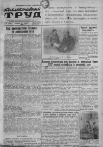 Пролетарии?всех empant соединяйтесь* # •/СЬиие&пивнеш Орган К а р а су к ск о г о райкома ВКП (б ) и районного Совета депутатов трудящихся, Новосибирской области Л» 5 ( 9 4 8 ) Пятница, 18 января 1946 г. Цена н о м ер а 15 копеек лок коммунистов и беспартийных— э т о сталинский блок, э т о с о ю з партийных и беспартийных б о л ь ш е в и к о в , о б ъ е д и н я ю щихся для того, чтЯКы п р е т в о р я т ь в ж и з н ь идеи Ленина и Сталина. Под руководством Сталина по ленинскому пуит 21 января 1924 г. умер величай ший вождь и учитель трудящихся всего мира Владимир Ильич Ленин. Вот уже 22 года мы живем и боремся без Ленина. И каждый прожитый год служит новым д оказательс твом непреодолимой жи зненности ленинских идей. Минувший 1945 год год полной победы Советского Союза над гитлеровской Германией явился подлинным торжеством учения Левина—Сталина. С какой силой звучали во время Отечественной войны слова Владимира Ильича, сказанные им еще в 1919 году! Л е нин говорил: „Никогда не победят того народа в котором рабочие и крестья не в большинстве своем узнали, почувствовали и увидели, что они отстаи ваю т свою, советскую власть—власть трудящихся, что отстаивают то дело, победа ко торого им и их детям обеспечит возможность пользоваться всеми благами культуры, всеми со з д а ниями человеческого труда" (том 24 стр . 258 259). Дореволюционная Россия была страной слабой и отсталой. Она все более и более подпадала в зависимость от бог атых к апи та листических государств. Бу ржуаз- но-помещичьий режим довел нашу страну до то го, что ей г р о зил позорный удел колониальной страны, а нашему народу колониального рабства. Но Ленин спас Россию от этого позора. Он создал и закалил партию б ол ьш е виков, он готовил рабочий класс, крестьянство, в сех трудящихся к Свержению самодержавия, с в е р жению владычества помещиков и капиталистов и установлению власти народа. Через все т р уд ности Ленин вел и привел народ к Великой Октябрьс кой революции. В 19»7 году еще до Октябрьской революции, Ленин говорил, что нашей стране надо во что бы то ни стало догнать и перегнать передовые страны в экономическом отношении, иначе мы п о гибнем. Ленин верил в тв ор ч е ские силы освобожденного н ар о да и предсказывал, что народ, имея ясную программу великих работ, сумеет под руководством большевистской партии пока за ть чудеса в переустройстве нашей страны и превратить ее в могущественнейшую державу мира. Наш народ верный з а в е т а м Владимира Ильича, осуществил ленинский план. Товарищ Сталин твердо вел и ведет нас по л е нинскому пути. Товарищ Сталин организовал и воодушевил народ ные массы на решение великих задач и мы добились таких у сп е хов. о которых раньше можно было только мечтать. Под руководством товарища Сталина мы построили могучую, первоклассную промышленность-- основу экономического расцвета страны н е г о обороноспособности, основу роста материального благосостояния населения. Мы с о з дали, как з а вещ ал Ленин, кр уп ное колхозное производство—б а зу зажиточной и культурной ж и з ни крестьян. Мы укрепили союз рабочих и крестьян, братское содружество всех советских народов. Социалистическое строительство сплотило и объединило многонациональный Советский Союз- Рабочие, крестьяне, интеллигенция в сех со ве тски х национ альн о с т е й - э т о одна обш ая се мья, и одни у них интересы , одни цели. В годы Отечеств