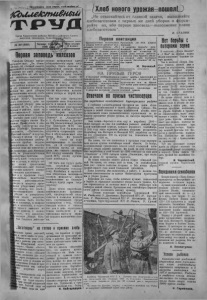 и sjy f j* Пролетарии всея стран, совд иняйте сь\ iC b u u eii^n u S H M i т р у д Орган Кара сукско го райкома ВКП(б) и районно го Совет а деп у т а т о в т рудящихся, Н о в о си б и р ск о й области. № 45 {988) Ч е т в е р г , 8 1 9 4 6 ■Цена номера \сщ5 копеек 4М. Перавя заповедь колхозов Т о в а р и щ С т а л и н п р е д у п р е ж д а е т н а с : „ Н е о т в л е к а й т е с ь о т г л а в н о й з а д а ч и , в ы п о л н я й т е х л е б о з а г о т о в к и п е р в ы х ж е д н е й у б о р к и ф о р с и р у й т е и х , и б о п е р в а я з а п о в е д ь — в ы п о л н е н и е алана х л е б о з а г о т о в о к " . П е р е д о в ы е к о л х о з ы н а ш его р а й о н а х о р о ш о у я с н и ли это у к а з а н и е в о ж д я и с рервых ж е д н е й у б о р к и О р ганизованно н а ч а л и х л е б о [д а ч у г о с у д а р с т в у . К о л х о з [ Н о в ы й п у т ь " , Х о р о ш и н - [ к о г о с е л ь с о в е т а , у ж е за к о н ч и в ш и й у б о р к у р ж и на ( лошади 30 г а , 3 а в г у с т а , ервым в р а й о н е , с д а л на а г о т о в и т е л ь н ы й п у н к т 50 « у д о в з е р н а н о в о г о у р о ж а я . Щ1 ц е н т н е р р ж и с д а л г о с у д а р с т в у к о л х о з и м е н и К а л и н и н а . П р и с т у п и л и к сд а - ■ е хлеба, г о с у д г р с т в у к о л - х зы: .^ П о б е д а ” , П а л е ц к о г о с е л ь с о в е т а , « П я т и л е т к а » , , Срагный к о л о с - и д р у г и е , J О д н а к о в ц е л о м п о р л й - ф у х л е б о п о с т а в к и ■ в а ю т с я к р а й н е ■ т в о р а г е л ь н о . В о м н о г и х к олх о зах е щ е н е п о д г о т о в - Н н т р а н с п о р т д л я в ы в о з к и Щ е б а , не у к о м п л е к т о в а н ы М а н с п о р т н ы е б р и г а д ы . И В о з и т ь х л е б г о с у д а р с т в у ■ е м и н о ч ь ю , в л ю б у ю моголу, в с е м и с р е д с т в а м и п е р е д в и ж е н и я — в о т б о е в а я программа к а ж д о г о к о л х о за, к а ж д о г о к о л х о з н и к а . № а к и в п р о ш л о м г о д у р у к о в о д и т е л и н е к о т о р ы х колхозов л е г к о м ы с л е н н о подходят к в о п р о с у о р г а низации у б о р о ч н ы х р а б о т , ■ ж н о п о н я т ь , ч т о х л е б о - едАча— в а ж н е й ш е е з в е н о на| у б о р к е и у с п е ш н о м у решению э т о г о м е р о п р и ятия д о л ж н ы б ы т ь п о д ч и - ■ ы и к о с о в и ц а , и с к и р л о * ■ и е , я м о л о т ь б а , и п о д г о - ■ ка зерна к в ы в о з к е на ■ пные п у н к т ы . А м о ж н о И с к а з и т ь , ч т о п р е д с е д а - Я Г “ к о л х о з а . И с к р а И л ь - I’oe Гладков действи- ича'" т е л ь н о о р г а н и з о в а л с д а ч у о б м о л о ч е н н о г о з е р н а г о с у д а р с т в у . З д е с ь с к о с и л и и о б м о л о т и л и о з и м у ю р о ж ь с п л о щ а д и 26 г е к т а р о в , а г о с у д а р с т в у с д а л и т о л ь к о 11 ц е н т н е р о в ; Б о л е е 40 ц е н т н е р о в о б м о л о ч е н н о й р ж и л е ж и т п о д о т к р ы т ы м н е б о м . В к о л х о з е н е т н и о д н о г о к р ы т о г о т о к а . Я с н о , ч т о не и с к л ю ч е н а в о з м о ж н о с т ь п о т е р ь и п о р ч и х л е ба. К о е г д е е щ е п ы т а ю т с я п р и к р ы т ь с в о ю б е з д е я т е л ь н о с т ь в п л о х о й п о д г о т о в к е к х л е б о у б о р к е р а з г о в о р а м и о « з е л е н ы х х л е б а х » , П о д о б н у ю т е о р и ю в ы д в и г а ю т п р е д с е д а т е л и к о л х о з о в . П у т ь Л е н и н а - и „ К о м и н т е р н " т. т . Л у к ь я н е н к о и Д ь я ч е н к о . И х п о д д е р ж и в а е т д и р е к т о р П а л е ц к о й М Т С т о в Д у р и ц ы н . Е м у б ы х о т е л о с ь о т с р о ч и т ь с о з р е в а н и е х л е б о в в о б с л у ж а в а е м ы х к о л х о з а х . В е д ь н а у с а д ь б е р а з в е р - i M Т С с т о я т н е о т р е н е у д о в - j м о н т и р о в а н н ы е 8 к о м б а й нов , д а и о т п р а в л е н н ы е в к о л х о з ы п о ч т и не с к о с и л и н и о д н о г о г е к т а р а . В о т п о ч е м у к о л х о з ы П а л е ц к о й М Т С п л о х о 