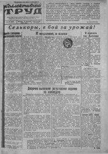 П р о л ет а р и и всем с т р а н , с о е д и н я й т е с ь Орган К а р а с у к с к о го райкома ВКП(б) и р а йонного С овета д еп у та т о в т р у дящ и х с я , Новосибирской области. Л» 4 6 ( 9 8 9 ) Четверг, 15 августа Ч е м а н о м е р а 1946 года 15 к о п е е к *Задача заключается в ; тем, чтобы селькор в деревне был крепок в той позиции, которую он занимает в настоящее время по борьбе со всеми недостатками—непорядками, злоупотреблениями в деревне тех ила др угих советских о рга нов. э т а заоача всегда останется главной задачей наших селькоров в деревне. Ио я х о ч у сказать, что задача сельских корреспондентов в деревне заключается не только в этом, но и в том, чтобы активно бороться против недостатков в работе местных организаций и активно участвовать во всем положительном строительстве наших местных советских, кооперативных и др у г их организаций". в. м о л о т о в . С е л ь к о р ы, в б о й з а у р о ж а й ! рйьоспотерями итрольшзадача | с е л ь к о р в д е р е в н е - б о л ь ш а я д|ла. К его словам при слуш ива й с я вся общественнос ть, его Нрресиояденции в стенных, р а нной и областной га з е тах п о дтают партийным и советским Гганам вскрывать недостатки в боте, изобличать людей, не к л а в ш и х честно трудиться на б-аго нашей Родины, распрос- Ианяют положительный опыт п( редовиков социалистическо го земледелия и животноводства. Илисьма с е лькоров помогают п есекать нарушения устава сель- сюхозяйственной артели, под- 1 гивэют отстающие колхозы, ссвхозы и МТС. Селькор тов. Юбылинский прислал в . К о л лективный труд" з а м е т к у о зло- ■ ютреблениях своими обязан - I 1 стями, кот оры е допускал зав. Ифмой колхоза .К р а с н ы й пь- I рь“ Лободенко. Проверка кор- Июпонденции т о в . Кубылинско- I подтвердила ее правдивость. 3 в. фермой Л ободен к о с рабо- тп снят. I По сигналу селькора снята с реботы и привлекается и отвег- свенноетй сливкоотделенщи к Ь ыльникова из колхоза им. Буденного, к о т о р а я созн ательно ока зы вала с ь принимать молоко у индивидуальных сдатчиков, е плвая выполнение плана молоко- п ставок государству. I На полях колхозов нашего р 1Йона сейчас проходят массовые ci яькоровские рейды по борьбе ^потерями на уб о р к е у р ож а я . И ет необходимости д о к а зы ва т ь н сколько велика и с ерье зн а за - Д ча, которую поставили перед I Щ бой эти рейды. Н Ежегодно наши колхозы т е р я ют сотни центнеров хлеба из-за | Н фадивости отдельных колхозни- | Я )В>комбайнеров, р уководителей ^ ■ ’лхозов и МТС. Подсчитано, что е ли потерять 1-2 це нтнера зерна Я Я1гектаре, то это в м а сш т абе всей с раны составит от 500 миллио- I 1 1)в до 1 миллиарда пудов хлеба. ■ то—тягчайшее п р е с т у п л ени е ■ фед Родиной. Вот почему лькоры поднимают с ей ч а с Н : ои голос против п о т е р ь на ^ ■ ю р к е урожая. Они хотят с б е - Н ;чь Родине эти миллионы fly 's 'В хлеба. Совместно с с елькорами в рейд ■ борьбе с пот ерями вступают ■ ’«сомольцы нашего ра й о н а . ^ ■ Партийные и сов е т с к и е о р г а - I 1Нт 1 И лолжньт п о д д ерж и ва т ь Циэтиву с елькоров. Все не- . Дтки’ на ко торы е у к а зы в а - * м » , „ Коровские Заметки, надо L * ? eHH0 об суждать на за се- ■ т р правлений к о лхозов , в У транять°ВХ03аХ " быС1рн их I нь]Иwu61' 1 боево^ жизнью дол- и g n 1ь наши стенные газеты 1 ‘гуляпнп ЛИСТКМ"' 0|,и ДОЛЖНЫ чгски пг° ВЫхолнть и система™ I веШать материалы рейда. с] вннойИ1пеЧСаетЛиЬКОры' р а б ° THMKt! СРганизуйт» ’ комсомольцы! Р массовые селько - чи! Ре йды в борьбе 