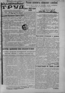 п рол ет арии всех стран, соединяйтесь1 О р г а н Карасукского райкома ВКП(б) и районного Совета v депутатов трудящихся, Новосибирской области. j v s 57 ( 1 0 0 0 ) Пятница, 18 октября 1946 года Цена номера 15 копеек ЗаседаниеВерховногоСовета СССР Информационное соо бщ ени е о заседании И р о в н о г о Совета С С С Р 15 октября 1946 года Вчера, 15 октября, в 7 часов вечера, в зале заседаний (верховного Совета СССР, в Кремле, состоялось открытие вто- Шсессии Верховного Совета СССР. Н —Председатель Совета С|юаа денуРезко усилить обмолот хлебов!} Пусть дни и ночи, не смолкая, шумят комбайны и молотилки на колхозных токах! Вывез 1680 пдуов! хлеба -- ----------------- « — * , - А. А. Ж д а н о в сообщает, что на рассмотрение фссии Вер- ого Совета СССР вносятся следующие вопросы: 1 ■ 1. Утверждение Государственного бюджета | СССР I ) год и отчет об исполнении Государственного! бюд (ОС1 за 19*4 и 1945 годы. Вопрос вносится Советом Министров СССР. 2. Утверждение Указов Президиума Верховного С Н Вопрос вносится Президиумом Верховного Совета ССС Соевт Союза и Совет Национальностей по предложению Щ тата П а в л ю к о в а В. Н. раздельным голосованием попала- “ единогласно включают эти вопросы в порядок дня заседа- Верховяого Совета. Совет Союза и Совет Национальностей по предложению тата К у п р и я н о в а Г . Н . раздельным голосованием по па- |и принимают следующий порядок рассмотрения вопросов: | а д о Государственном бюджете заслушать на совместном а содоклады бюджетных комиссий, обсуждение ета и его утверждение провести раздельно по палатам; ;денеи второго вопроса порядка дня—утверждение Ука- Президиума Верховного Совета СССР провести также р а з но по палатам. С докладом о Государственном бюджете СССР на 1946 исполнении Государственного бюджета СССР за 1 9 4 4 и годы выступил министр финансов СССРдепутат З в е р е в А. Г. По окончании доклада депутата Зверева А. Г совместное ание Совета Союза и Совета Национальностей закрывается. В начале хлебосдачи полком и райком партии направили меня в колхозы на вывозку зерна государству. Спервых же дней работы я решил твердо—как можно больше вывезти хлеба на заготовительные пункты, помочь колхозам скорее выполнить первую заповедь. Машина у меня двух с половиной тонная. При тщательном уходе работает безотказно. Ежедневные задания я систематически выполняю на процентов. За 40 аботы сделал пробег дм. На государствен- скдады доставил 1 6 8 0 0 ’ на. ября за один день колхоза им. Степана аЗина 9 0 0 пудов хлеба, сделав пробег 3 6 0 километров. З а перевыполнение заданий получил в виде премиального вознаграждения 1 60 кг муки. Премирован также ценным подарком. Секретов в моей работе нет. Так может работать каждый шофер. Нужно только строгое соблюдение правил технического ухода, полная нагрузка машин и желание сделать как можно больше для досрочного выполнения плана хлебопос тавок. С. А. Л и с о во й Шофер Карасукской райконторы „Заготживсырье* [ОСРОЧНО ВЫПОЛНИМПЛАНХЛЕБОЗАГОТОВОК! октября проведем всенародный в о с к р е с н и к красных о б о зо в с хлебом государству! Обращение колхозников и колхозниц сельхозартели имени Щрдлова ко всем колхозникам и колхозницам Карасукского района О | 4 ы , колхозники и колхозницы сель- И хозяйственной артели имени Сверд- Хорошинского сел ьс ов е та вырастили )ысокий урожай в первом году Старинной, пятилетки. Все думы и стрем- Т » я наши сейч