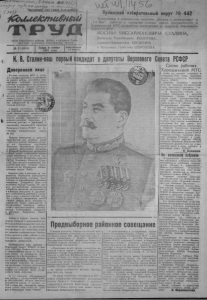 * / & > * а ъсъ+-ф 4' ^ о ь ы , ^ , / ; , . , Пролетарии в с е х ст р а н , соединяйт есь 7 3*3/ -------------------------------------------- 4й м ае& #ш & Ш 44 Т Р У Д Орган К а р а с у к с к о г о р а й к о ма В КП( б ) и р а йонног о Сов е т а д е п у т а т о в т р у д я щи х с я , Но в о с и б и р с к о й о б л а с т и № 2 (1 0 1 6) С р е д а , 8 я н в а р я 1 9 4 7 г о д е Цена н о м е р а 15 копеек Ку б и н с к и й избирательный о к р у г № 4 4 2 Колхозники и к олх о зни цы к ол хо з ов „ В п е р е д к коммунизму" и „1-е Мая“ , рабочие и служащие с о в х о з а имени Д з е р ж и н с к о г о и Хорошинской МТС выдвинули кандидатами в д епу т аты В е р х о в н о го С о в е т а Р С Ф С Р ИОСИФА ВИССАРИОНОВИЧА С Т АЛ И Н А , Вячеслава Михайловича МОЛОТОВА, Алексея Николаевича КОСЫГИНА и Владимира Никитича Ш О Р О Х О В А ( ■ I И. В. Сталин-наш первый кандидат в депутаты Вехровного Совета РСФСР Д о в е р е н н о е лицо * В о в с е х к о л х о з а х , МТС и с о в х о з а х , на предприятиях и в у чр ежде ниях наше г о района с о с т о я л ис ь пред выборные собрания к ол хоз ников , р а б о чих и с лу жа щи х с обс уждением решений членов а рт елей . В п е р е д к коммуниз му ” и , 1 . Ма я * , р а б о чих и с лу жащих с о в х о з а Имени Д* ержин- с к о г о и Хорошинской МТС, я у в ши х кандидатов в де пут а т ы хо в но г о С о в е т а - Р С Ф -Р- менно прошли предвыбор^МТ себу ния из бирателей на в с е ^ тельных уча с т ка х . С 6 января с о с т о я л о с ь пр ное районное с о в е ща ние пред’ телей о бще с т в е нных ор г а низ а ций и о б ще с т в т рудящи х с я . Из биратели на ше г о р а йо на единодушно под держа ли решения п е р е д о в ых к о л хозников , р а б о ч и х и с л у жа щи х о выдаижнин кандидатов я депутаты В е р х о в н о г о С о в е т а РСФСР по Ку- пинскому из бирательному округу № 442. Первым кандидатом в депутаты было наз вано имя великог о вождя с о в е т с к о г о народа любимог о Стали иа, е г о ближайших с орат ников В я че с л а в а Михайловича Молотов а и Але кс е я Николаевича Косыгина. С б ол ьшой акт ивност ью т рудящиеся района т а кже поддержали выдвижение кандидатом в де пут а т ы п е р в о г о с е к р е т а ря Купинского райкома ВКП( б) Владимира Никитича Ш е р о ховат Они просили выдвинутых кан дидатов дать с в ое согласие б а ллот иров а т ь с я по Купинскому из б и р а тельному о круг у №442. Б о л ь ша я роль в агитации з а в ы двинутых кандидатов принадлежит дов е р е нным лицам, к о т о р ые были избраны на предвыборном районном сов еща нии. Доверенное л и ц о —это посланник п артии в массы. Он должен систематически, ежедне вно на с обра ния х , митингах, на с о в е ща н и я х и в б е с е д а х выс т упа т ь и р а с с к а з ы в а т ь колхозникам, рабочим и с лужа - 1 щим о роли коммунистической пар-1 тии, о победах, одержа нных нашей | страной, широ ко вести а гитацию за кандидатов бло ка к омму нис т о в и бе спарт ийных, з на ко мит ь и з б и р а телей с произ в од с т в е нной д е я т е л ь нос т ью и биографией ка нд а д а т ов в депут аты В е р х о в н о г о Со в е т а РСФСР. Се й ч а с в п е рв ую оче р е д ь надо широ ко р а з в е р н у т ь агитационную р а боту на из бират ельных у ч а с т к а х , сист е мат иче с ки б ыв а т ь на де сятидвор- к а х , пр о в е р я т ь к а к а г ита то ры п р о в о дят з анятия с из бирателями. Н е о б х о димо с о с т а в ит ь план р а б о т ы с у ч е том з а п р о с о в и инт ере сов р а з л и ч ных групп из бирателей. А - Ш ! г Приближа е т с я день в ыб о р о в в Ве рхов ный С о в е т Р С Ф С Р —9 ф е в раля 1 9 4 7 г о д а . Явимся в с е , к а к один, к из бир а т е л ьным урнам и отда