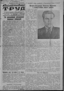 ы ? ? Т Т ^ 7 ~ р------ _ ( У О ^ С Л Л ^ л— чт*'*-"*'' уу/ т г а г с ы ^ ^ & П р олет ари и всех стран, соединяйтесь1 > 1СЪи*Ш сми$нш Т Р У Д О р г а н К а р а с у к с к о г о р ай ко м а В К П ( б ) и р а й о нн о го Совета д е п у т а т о в т р у д я щ и х с я , Н о в о с и б и р с к о й области М 6 ( 1 0 2 0 ) Понедельник, ^27 я нв а ря 1947 г ода Ц е н а н о м е р а 1 5 к о п е е к \ I > За дальнейшее расшниере посеывхнплощадей С е й ч ас , ко гд а пер ед сельским хозяйством нашей страны встали новые серьезные задачи , с о в е т ское правительство приняло ч р е з вычайно важное решение , н а п р а в ле нное к дальнейшему п о д ъ ем у з ернового хозяйства восточных районов. Постановлени е С о вета Министров Союза СС Р „О расши ре ни и посевных п л о щ а дей и повышении у р о ж а й н о с т и зерновых к у л ь ту р .. цу особенно яровой пш еницы в роеточных районах С С С Р ' - д о к ум ё в т^ р бм а д - ного значения , ко то рый Представляет. собой грандиозную стал ин скую программу превращения восточных районов в мощную ж и т ницу страны. За 194.7-1949 годы посевные площади в • восточных районах должны быть расширены на 8 миллионов ге к т а р о в , из них под яровую п ш е н и ц у на 5,5 мил лиона ге к та ро в . П ер ед т р у ж е н и к а м и колхозных полей н аш е г о района стоит почетная задача: в б л ижа йш ие го ды до стичь довоенный уровень посевных площадей, возродить былую славу высоко ур ожайной Кулундинской степи. За три бл иж а йш и х года к о л х о зы н аш е г о района должны ш а г нуть в расширении посевных п л о щадей на 9059 ге к т а р о в , в том числе в 1947 году на 3344 г е к т а ра. Правитель ство п ре д ус м ат ри вает т а к ж е оказание, помощи сельско м у хо зяйству восточных р а й о нов. К весеннему севу ны н е ш н е г о года машинно тра кторны е станции н аш е г о района получат 6 0 новых гусеничных тракторов. А всего за 1947 1949 годы в наш р айон будет завезено около 200 т ра к торов . Все это вполне п озво ляет колхозам в бл иж а йш и е годы повысить ур ожай ность и валовые сборы зерновых ку л ьтур . Од на ко многие колхозы н а ш е г о района страдают весьма серьезными н едостатками . И з года в год не выполняются планы вспаш ки паров и зяби, чт о является гл ав ной причиной засорения полей. Недостаточно используются в к о л хо з ах под посев яровой пшеницы б о гат ейш и е запасы целинных и залежных земель. Н е и с к о р е н и лось ещ е беспечное о тн ошение ряда р у к оводите ле й колхо зов к соблюдению а г р о т е х н и ч е с к и х м ероприятий и введению правильных севооборотов. Под го то в к а к весеннему севу ны не ш н е го года должна явиться важнейшим звеном нашей общей работы по выполнению поста новления правительства от 26 д е к а бря 1946 года. Возьмем вопрос о мех анизаторских ка драх. В М Т С района, при наличии имеющихся тр а к то р о в , нехв ат ает 44 т р а к т о рист а. Т р а к т о р и с т о в на машины , Н а т и “ имеется всего 41 человек На* наличный тра к то рны й пар к н у ж н о 44 ч е л о в е к а . С п р а ш и в а е т ся, к т о ж е сядет на новые маши ны, ко торы е пол учат наши машин н о -т ра к то рны е стан ции? Волнует ли э то т вопрос руководителей р ай ЗО , М Т С и колхозов? П о д г о то вка м ех аниз аторских кадров должна стать предметом особой заботы дирек торов М Т С и р у к о водителей колхозов. Н е лу чш е обстоит дело с ремой том тр а к то ро в . План ремонта тр а к то ро в во всех пяти М Т С района выполнен всего лишь на 45 процентов. О с о бенно неудовлетворительно о б стоит дело с ремонтом в Черно К у р ь и н с ко 