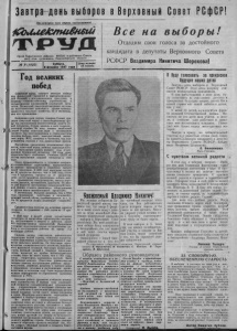 <1 ч Завтра-день выборов в Верховный Совет РСфСР! П р о л е т а р и и в с е х с т р а н , с о е д и н я й т е с ь 1СЬиие&ти€н$ш Т Р У Д Орган К арасукского райкома ВКП(б) и районно го Совета д е п у .а тов трудящ ихся , Н о в о си б и р ск о й области М 9 {1023) Суббот8, 8 февраяя 1947 гада Ц е н а н о м е р а 1 5 н о п е е к В с е н а в ы б о р ы ! Отдадим свои голоса за достойно го кандидата в депутаты Верховного Совета РСФ С Р Владимира Никитича Шорохова! Год великих п о б е д Советский народ , одержав великую п о б е д у пах фашистской Германией и импер иалистической Японией; с воодушевлением приступил, к мирному социалист ическ ому строительству , к осуществлению посл ев оенной Сталинской пятилетки. Пятилетний план предусмат ривает не только восстановление до в о ен н о1 о уровня промышленности и сельского хозяйства, но и зн а ч и т ел ь но е е г о превышение. Большевистская партия, товарищ Сталин п р и звали советский народ к сам оот в ерженном у т р у д у над выполнением Величественных планов н о вой пятилетки. Страна оделась в леса соц и ал и с тической стройки. Во [всех концах необ'ятной зашей Родины советские люди с энт узиазмом трудятся над восс тановлением и строительством заводов , фабрик, шахт, электростанций, ж е л е з ных дорог, МТС, со в х о з о в и 'колхозо в, над в о з рождением городов и сел, разрушенных врагом. Настойчиво преодолевая послевоенные т р у д ности, советский н арод добился серьезных у с п е хов в выполнении планов перво го года п о с л е военной Сталинской пятилетки. Об этом ярко свиде тельствует со о бщ ен и е Госплана СССР об итогах выполнения заданий пятилетки в 1946 году . Наша промышленность в [основном зав е рш и ла по сл ев оенную пер ес тр ой к у , переключилась иа мирное производство и увеличила выпуск своей продукции. В 1946 г оду выпущено чугуна на 20 процентов больше, чем в 1945 году , стали —на 9 процентов, проката —на 13 процентов, угля—на 10 процентов, увеличилась добыча н е ф ти, производст во электроэнергии, выпуск п аро возов, вагонов, автомобилей, тракторов. Во много р а з выросло изготовление се льскохо зяйст в ен ных машин, станков, различного о бор удован и я и других видов промышленной продукции. В значительно больших разм ерах, чем в 1945 го ду, п роизв едено шерстяных и хл о п ч а т о б у мажных тканей , об у в и , строймат ериалов и т. д . На 30 процентов возрос розничный т о в а р о о б о рот. Среднесуточная погрузка на железных д о р о гах возросла по сравнению с 1945 годом на 13 п ро центов. В 1946 году в нашей стране осуществл ено гигантское по масштабам строительство: п о с т р о е но, восстановлено и введено в д ей с тв и е около 800 государс твенных предприятий. Выполнены огромные восстановительные и строительные р а боты в пост радавших районах на сумму 17,5 миллиарда рублей. Сильная за с у х а , охватившая значительную территорию нашей страны, помешала о с у щ е с т в лению намеченных планов восс тановления и р а з вития се льского хозяйств а. Но благодаря п р е и мущества социалистического хозяйства, о с н ащ е н ного машинной тех никой, благодаря к олхозному строю, валовый у р о ж а й и товарная продукция з ерна , несмотря на крайне неблагоприятны е условия, были на много выше, чем в 1921 го д у , когда тер ритория, пораженная з а с ухой , была значительно м еньше. С о в ет ск о е правительство оказало помощь пострадавшим районам п р о д о вольствием, семенами, фуражем и приняло меры к п