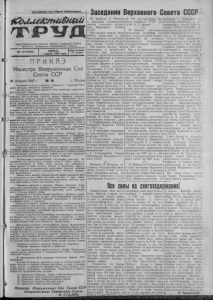 Ирблштараи всех стран, со вд икяйт еЫ л р Орган Ка р а с у к с к о г о райк ома ВКП(б) и районног о Сове т а д е п у т а т о в т р у дящих с я , Но в о с иб ир с к о й области М 1 2 ( 1 0 2 6 ) Суббота, 1 м арта 1 9 47 года Цена н о м е р а 15 ноп еен П Р И К А З Министра Вооруженных Сил Союза С С Р ; 28 ф е в р а л я 1947 г. № 10 Москва Товарищи солдаты и матросы, сержанты и старшины! Товарищи офицеры, генералы и адмиралы! Сегодня наша страна пра здву ет 29-ю годовщину с у щ е с т в о в а ния Советской Армии. Основанная великим Лениным, Советская Армия прошла слав- ‘ ный путь. Вся е е история является живым примером героизм а, б е з за в е т н о г о служения Родине и д о б л е с т н о г о выполнения св о е го воинского долга. Это о с о б е н н о ярко проявилось в выдающихся п о б ед а х . одержан ных Сов етской Армией в Великой Отеч ественной войне. Родина никогда не заб у д е т г е рои ч ес к и х дел своей армии. День св о е й 29-й годовщины Сов етская Армия встречает в условиях, когда весь наш народ напряженно трудится, о с у щ е с т вляя задачи по ликвидации последствий войны, по в о сстановлению и дальнейшему развитию н а ро д н о г о хозяйства. Р абоч и е , крестьяне и интеллигенция нашей страны, усп еш н о выполнив план п ерво го года новой пятилетки, са м оот в ерженно борются за да льнейшее повышение темпов строительства и роста производства во в се х отраслях н ародного хозя йств а, за новый п о д ‘ем промышленности и се льского хозя йства, за ув ел ичение выпуска товаров широкого п о т р еб л ен и я , за быстрый рост с о в е т ской науки и техники. Прошедшие выборы в Верховные Советы союзных р е с п у блик увенчались полной п об едой блока коммунистов и б е с п а р т и й ных. Это означает, что единство сов е тс к о го о бщ ест в а нерушим о , ч то все со ветские люди тесно сплочены вокруг с в о е г о правительства, коммунистической партии и полны реш имос ти добиться даль нейшего расцвета св о е й Родины. Советская Армия в у сл овиях мирного времени, выполняя п о ставленные п е р е д ней задачи по б о е в о й у ч е б е , обя зана также двигаться дальше вп ер ед и д обить ся новых, б о л е е высоких у с п е х о в в б о е ё о й и политической подго товке. Этого т р е б у ет от нас д ел о упроч ения мира, дел о об еспечения безоп а сн о с ти нашей Родины. Руководящим приципом б о е в о й подготовки с о в е т с к и х В о оруженных Сил всегда было и теп ер ь о с т а е т с я —учить войска т о му, что нео бходим о на войне. Опыт показал, ч т о современная война т ре бу ет от войск высоких бо евы х и моральных качес тв , хор ош е й военной и политической подгот овки , ум ел о го владения б о е в о й техникой, надеж ного взаимодействия и большой ф и зи ч е с кой выносливости. Задач а в сего личного состава нашей армии, авиации и ф л о та заключается в том, чтобы неу стан н о , изо дня в д ен ь , с о в е р шенствовать с в о е в оенное мастерство, п р о д о л ж а т ь гл у б о к о и з у чать опыт войны и ум ел о использовать его . Генералы, адмиралы и офицеры обязаны неуклонно повышать свои т е о р е т и ч е с к и е—военные и политические знания, а так же о в л а д е г а т ь методикой войсковой подготовки, столь н е о б х о д и мой в ус л овиях мирной учебы. Сержанты и старшины должны настойчиво овладевать командирскими навыками, чтобы на д е л е стать ближайшими помощниками оф ицеров в поддержании воинской дисциплины, в обучении и воспитании со лдат и матросов. Солдаты и матросы должны стара