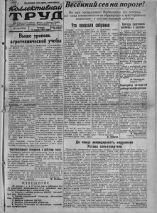 ____ 7 ПроЛётаршл всех Стран, соединяйтесь) Ц Ъ иие/ст ивнбМ Т Р У Д згая Караеукского райкома ВКП(б) и районного Совета ” депутатов трудящихся, Новосибирской области М 15 (1029) Ч е т в е р г , К*/™ 7,Г 13 марта 1947 гада | 16 " в п “ Выше уровень агротехнической учебы Постановление Пленума ЦК ВКП(б) «О мерах под'* ема сельского хозяйства в послевоенный период» ставит перед колхозами чрезвычайно ответственную задачу в деле повышения урожайности полей. Известно, что уровень агротехники весенне-полевых работ в основном предопределит судьбу урожая. Поэтому необходимо добиться того, чтобы бригадиры полеводческих бригад, звеньевые хорошо овладели знаниями и умело применяли все правила агротехники. Голос агронома должен громко звучать в каждом колхозе. Его направляющая рука должна чувствоваться буквально во всех хозяйственных мероприятиях, от которых зависит проведение сева на уровне высокой агротехники. Выполняя решения районной агротехнической кон- }ТС регулярно проводит ,6стоянно-действующие семинары бригадиров полеводческих бригад. Проведено уже 2 семинара, на которых присутствовало 20 человек. Занятия проводит старший агроном МТС т. Черкасский. Беседы т. Черкасского—не сухой пересказ агротехнических правил. Свои беседы на агротехнические темпы он иллюстрирует хорошо известными ему фактами из деятельности двух или нескольких колхозов. При сельских советах района организованы агрокружки, в которых должны заниматься руководителя и члены семеноводческих звеньев. Хорошо работают агрокружки при Осолодин- ском, Нестеровском, Кучу- гурском и Богословском сельсоветах. В Октябрьской МТС (старший агроном тов Зыкин) агрокружки рабо тают во всех 11 колхозах В Черно-Куринском сельсо вете оживлена работа пос тоянно-действующей комис сии по полеводству, возгла вляет которую старший аг роном Черио-Курьинекой МТС тов. Курилко. Однако не все агрономы по-настоящему относятся к проведению агротехнической учебы. Старший агроном Хорошинской МТС тов, Захаров работу по проведению агроучебы сложил на участковых агрономов, которые не могут даже собрать людей на занятия. В Хорошинском сельсовете ни одного занятия с полевыми бригадирами и звеньевыми Агроперсонал отдела сель ского хозяйства также ма ло интересуется агротех учебой, не оказывает практи ческой помощи агрономам МТС. Время до начала весен- не полевых работ остается очень мало. В оставшиеся дни необходимо наверстать упущенное. Каждый бригадир полеводческой бригады, звеньевой должен п о л у чить необходимые знания по агротехнике полевых работ. Весна приближается. Место агронома сейчас в колхозе, в бригаде, в звене, где решается судьба будущего урожая. сев н а п о р о г ег Безответственное отношение к рабочему скоту Подготовка рабочего скота к весне—одна из главнейших задач по подготовке колхоза к вееене поле- вым работам. Однако этого Г не хотят понимать руководители сельхозартели «Но- вая семья». В колхозе имеется 38 рабочих быков. 16 из них крайне истощены и не пригодны для работы. Остальные тоже ниже средней упитанности. Это и не удивительно. Рабочий скот находится всю зиму в поме щенни, где нет ни окон ни дверей. Бригадир полеводческой бригады т. Шост беспечно относится к рабочему с к о ту. В результате такой бесхозяйственности в январе и феврале нынешнего года в колхозе пало 4 рабочих быка и же