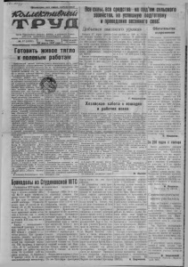 П р о л е т а р и и в с е х с т р а н , с о е д и н я е т е с ь Орган Карасукекого райкома ВКП(б) и районного Совета деп у т а т о в трудящ ихся , Н о в о си б и р ск о й области М 1 7 { 1 0 3 1 ) I Ч е т в е р г , ; 2 0 м а р т а 1 6 4 7 г о д а Це на н о м е р а 15 н о п е е к Готовить ж и в о е т я г л о к полевым р а б о т а м Пр едстоящей весной колхозы нашего района должны значительно расшарить посевные площади, в сж атые и притом лучшие сроки пров ести весенний с е в , во что бы то яистало добиться се р ь е з н о го повышения урожайности. Усп ешно решить эти задачи можно лишь в том случае, е<ц№ на весенних полевых р а б о т а х Л ^ д ет полностью за г руж ен не тА2д1/ ко тракторный парк МТС. рабоче е тягло колхозов. Т а м , \ ^ е учли значение живого тяглСЗ^ весеннем с е в е , где б е р еж н о е т ^ используют и по- хо зя йски у х а ж и - ' вают за ним—лошади и быки уж е имеют неплохую упитанность. В колхоз е „ Пятилетка* все л о шади имеют хорошую и среднюю упитанность . Сейчас все лошади и рабочий скот в ко л х о з е п о с т а в лены на предпосевной отдых. Образ цовый у х о д и правильная экспло- атация лошадей позволяют Волхову «Пятилетка" у сп еш н о с п р а в ляться со всеми хозяйственными задачами. Неплохо готовят живое тягло к в ес н е колхозы .Б о льш е вистскнй путь", имени Сталина, .М айско е утро" , имени Андреева, .Интернационал* и некоторые др у ги е . Большая часть лошадей и волов в этих к олхозах хорошей и средней упитанности. Слабое тягло постав лено ка длительную подкормку. Однако во многих колхозах за- подгот овку тягла к полевым работам д о сих пор ещ е не взялись. Об этом свидетельствуют такие факты. В еельх'озартели „Жана жол" (п р е дседат ел ь тов. Балто- баев) 90 процентов лошадей и волов крайне истощены и почти непригодны к эксплозтации. В к олхо з е достаточно сена. Но б е да в том, что у х о д за животпы ми не организован . Корма, к оторые подвозят к фермам, растас кивают, а лошади и быки стоят на полуголодной норме. В плохом состоянии живое тягло в колхо зах „Сибиряк", „Новая семья", „Новый путь", „Память Ильича" и др. В колхозах Благодатского с е ль совета значительная часть коней и вол'-'в заражены чесоткой. Однако ни вет еринарные работники отдела сельского хозяйства, ни. руководители колхозов не принимают решительных мер к и з лечению .ее. «<]Дп1гг1й б е с п е ч н о е отношение (МяЗДКЧгукоподителей колхозов ^'^^♦НьцЛи-яглу м ож е т привести ф з г ы ^ к м Д в е с е н н е г о сева и, в КОНИНС^ЬДОете, к срыву госудэр- чцвЯЯ>»/4Е?|.?адания по урожай - '// д о начала полевых “уэаСбт'^^остается все меньше и меньше. Н еобходимо теперь же обратить сам о е с е р ь е з н о е внима ние на п одготовку к весне всех лошадей, все х старых ч молодых волов. Истощенное и слабое п о головье нужно немедленно о с в о бодить о т всякой работы, по ст а вив на отдых и усиленное корм ление. Н' обходим о также в каж дом к о л х о з е со всей важностью подойти к вопросу забронирования н еобходим о го количества к ор мов на период весеннего сева. Следовало бы у ж е сейчас поду мать и о том, « э к и е колхозы, имеющие излишки сена, могут дать е г о взаймы тем артелям, к о торые не смогут обеспечить с в о их лошадей кормами па время в есеннего се ва. Такая еоварищес кая поддержка сыграет боль шую роль в выполнении плана полевых работ. Большое внимание н е обход им о уделить п одготовке и подгонке сб руи , а также ликвидации о б е з лички в у х о д е за лошадьми и в о лами. Лик