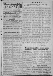 П Р И К А З Министра Вооруженных Сил Союза ССР 1 м а я 1947 г о д а АГе 21 г. М о с к в а П р о л ет а ри и в с е х ст р ан , с о е д и н я й т е с ь Я Орган Кар а с у к с к о г о райкома ВКП(б) и районног о Совета д еп у т а т о в т рудящихся , Новос ибирс кой области М 3 0 (1044) П о н е д е л ь н и к , 5 м а я 1 9 4 7 г о л а Ц е н а н о м е р а 15 к о п е е к В Совете Министров СССР О выпуске Второго Государственного Займа восстановления и развития народного хозяйства СССР Д л я д а л ь н е й ш е г о п р и в л е ч е н и я с р е д с т в н а с е л е н и я н а ф и н а н с и р о в а н и е х о з я й с т в е н н о г о и к у л ьт \> р н о г о с т р о и т е л ь с т в а , п р о в о д и м о г о в с о о т в е т с т в и и с п я т а л е т - н и м п л а н о м в о с с т а н о в л е н и я и р а з в и т а я н а р о д н о г о х о з я й с т в а СССР, С о в е т М и н и с т р о в С о ю з а ССР ПОСТАНОВИМ'. 1. В ы п у с т и т ь В т о р о й Г о с у д а р с т в е н н ы й З а е м в о с с т о н о в л е н и я и р а з в и т и я н а р о д н о г о х о з я й с т в а СССР н а с у м м у 2 0 м и л л и а р д о в р у б л е й с р о к о м н а 2 0 л е т . 2. О б л и г а ц и и з п й м а а д о х о д ы о т н и х , в т о м ч и с л е и в ы и г р ы ш и , о с в о б о д и т ь о т о б л о ж е н и я г о с у д а р с т в е н н ы м и и м е с т н ы м и н а л о г а м и а с б о р а м и . 3. У т в е р д и т ь п р е д с т а в л е н н ы е М и н и с т е р с т в о м Ф и н а н с о в СССР у с л о в и я в ы п у с к а В т о р о г о Г о с у д а р с т в е н н о г о З а й м а в о с с т а н о в л е н и я и р а з в и т и я н а р о д н о г о х о з я й с т в а СССР. У т в е р ж д е н о Советом М и н и с т р о в СССР 4 мая 11)47 года. День боьлшевитсскойпечати 35 лет н а з а д —5 мая 1912 года, в дни, когда начался новый рево люционный под' - ем в России, вышел пер вый номер газеты «Правда». В ч е с т ь появления «Правды» решено считать 5 мая днем праздника рабочей печати. Ни в одной стране мира печать не пользуется таким авторитетом и уважением, к а к у нас, в Советском Союзе. Это о б ‘ясняется тем, что она выражает подлинные настроения миллионных масс т рудящихс я . В борьбе за ос уще с т в л е ние важнейшей задачи по да ль нейшему под ' ему с ельского хозяйства, пост авленной февральским Пленумом ЦК ВКП(б), видная роль принадлежит нашей б о л ь шевистской печати и в первую оч е р е дь газетам. Пе р вейшая обязанность нашей районной газеты, десятков стенных г а з е т—довести до сознания каждог о к о л х о з ника, каждог о работника МТС и с ов х о з о в об их высоких обяз анностях перед Родиной за выполнение з а дач, поставленных ф е в р а л ь ским Пленумом ЦК ВКП(б), за получение в 1947 году высокого у р о ж а я . Большевистской печати присуще чуткое , внимательное отношение ко всему н о в о м у , горячее стремление внедрять это новое. Одна из самых благ ородных, с а мых насущных задач наших газет состоит сейчас в том, чтобы добиться широчайше го распространения п е р е д о вого опыта в борьбе за высокий у р ожа й , в о р г а низ а ции труда в кол х о з а х , в механизации полевых работ, в развитии животноводства . Шире, чем когда бы то ни было, надо предоставлять трибуну газаты передовикам сельс ког о хозяйства, показывающим образцы самоотверженной, упорной борьбы за высокие урожаи. Наша печать должна поднимать эти-х людеД на щит славы, учить на их опыте, всех т руже ник ов с о ц и а листических полей. Сила примера- великая сила, и нужно в полной мере и с - , пользовать ее для д о с т иже ния о бще г о успеха. Все эти большие и с е р ь езные задачи наша печать може т разрешить только тогда, когда она тесными узами