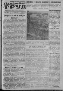 П р о л ет а р и и в с е х с т р а н, с о еди ня йт есь1 $СЪиие&ти#н$ш Орган Кар асу кского райкома ВКП(б) и районного Совета деп у т а т о в трудящихся, Н овосибирской области № 5 7 { 1 0 7 1 ) Воскресенье, 17 авг ус та 1947 года Цена н ом ера 15 копеек Убирать хлеб в любую погоду Прошло уж е три пятидневки августа. Однако темпы хлебоуборки продол жают оставаться н еудовл етворительными. К 15 а в гу с та колхозы нашего района выполнили план х л еб о у б о р ки всего лишь на 4,7 процента. Прирост за посл ед нюю пятидневку составил только 1,1 процента I плану. Это значит, что кол хозы района убирают в среднем по 100 гектаров хлебов в день. Причины такой медлительности в развертывании массовой уборки урожая кроются прежде всего в том что некоторые руководители колхозов, МТС и с о в хозов, в ожидании солнеч м,ных дней, взвешивают выгодность или невыгодность уборки в сырую, д о ж д л и вую погоду. Понятно, что ненастная погода, частые дожди, ос ложнили уборку урожая. Тем не менее передовые колхозы показывают на д е ле умение приспособляться к самым сложным условиям уборки , не пасуют п е ред трудностями и в любую погоду ведут косовицу, об молот и сдачу зерна госу- 'д ар с тву . В сельхозартели «Искра Ильича», несмотря на неблагоприятную п о г о ду, в уборке ежедневно участвуют 3-4 лобогрейки. Руководители эт ого к о л х о за используют полезно каждый час погожей по го ды. 14 августа, невзирая на дождь, в к о л х о з е «Искра Ильича» скосили 2-мя лобогрейками 6 га хлебов . Неудивительно поэтому, что колхоз „Искра Ильича* убрал уж е пятую часть урожая и сдал го сударству около 500 пудов зерна. Совсем по-иному организован труд в некоторых к о л хо зах Анисимовского I Майского сельсоветов . Кол хозы Майского сельсовета выполнили план х л е б о у б о р ки всего лишь на 1,9 про цента. З а последнюю пятидневку ни один из ко л х о зов Майского сельсовета не участвовал в хлебоуборке . Руководители указанных колхо зов ж д у т теплых сол нечных дней, возлагают большие надежды на к о м байны, не используют на уборке простейшие машины. Подобная же картина в к о л х о з ах Анисимовского сельсовета. Многие председатели кол* хозов, в надежде на комбайны, да л е к о недостаточно используют на х л е б о уборке простые машины. Практика преднамеренного сдерживания косовицы никак не совместима с интересами проведения уборки у р о жая во-время и без потерь. Успех в борьбе за у спеш ное проведение уборки и х л е бо за готовок реш а ет г о товность работать в поле, на токах , в транспортных брига дах по вывозке хлеба при любых условиях . Все с р е д ства уборки должны использоваться на полную мощность Партийные и советские организации должны принять крутые меры к любителям солнышка, шире раз вернуть социалистическое соревнование среди т р у ж е ников колхозных полей за преодоление трудностей уборки урожая, за выполнение и перевыполнение заданий по уборке, молотьбе и хлебосдаче. Преодолеем трудности наступающей осени. У б е рем ур ож ай во-время и без потерь! Комбайнер Купинской МТС Г. Н. Гуляев отремонтировал два своих комбайна, в то же время работая контролером. На снимке: тов. Г у л я е в и механик по комбайнам Н. Ф. К о т л я р о в пр оверяют комбайны после работы. Фото В. Шумакова В райисполкоме X я е 6— г о с Сдачу хлеба го сударству ведут 50 к олхо зов района. К 15 августа они вывезли на заготовительные пункты 2223 центнера зерна. Колхоз „Д