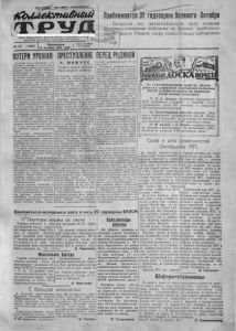 п р о л в с е х стран. с о е д и н я й т е с ь Орган Карас} косого райкома ВКП(б) и районного Совета депутатов трудящихся, Новосибирской области. № 74 ( 1 0 8 8) Воскресенье, 12 октября 1947 года Цена н о м е р а 15 копеек Приближается 30 годовщина Великого Октября Встретим эту знаменательную дату новыми производственными победами на фронте хлебозагохлеба. тадим Родине сверх плана больше сибирского ПТОЕРИ УРОЖАЯ—ПРЕСТУПЛЕНИЕ ПЕРЕДРОДИНОМ Ежегодно из-за нерадивого о т ношения к урожаю на полях колхозов нашего района допускаются большие потери зерна . Многие руководители колхозов считают потери 30-40 килограммов зерна на г ек т ар е нормальным явлением. Однако, в масштабе всего района в таком с л у ч а е мы недоберем сотни центнеров хлеба, что, в пер вую очередь, губительно скажется в оплате колхозного трудодня. Наскольк о б езотв етств енно о т носятся руководители сельсоветов и колхозов к мероприятиям по борьбе с потерями можно судить на примере Черно-Курьинского сельсовета. Проверкой установлено, что в колхозе „Новая семья" скирдование производится прямо на стерне. При уборке прос тейшими машинами допущены потери в колосе 50-60 килограммов на г е к таре. В колхозе „Жана дунья" при копнении и скирдовании подгребание колосьев не прои водится, в силу чего на каждом г е ю а - ре теряется больше центнера зерна. В колхозе „Интернационал" уборка комбайном производилась на неподготовленных участках. В ре зультате этого все снопы, н а ходящиеся на обкосе, были р а з биты, обмолочены и зерно втоптано в землю. Огромные потери на уборке урожая допущены в кол хоз ах „Коминтерн", имени Куйбышева, „Жана жол". Председателю Черно-Курьин' ского с ельсовета тов. Евтушенко, ру ководителям кддхозов, допуь стившим потери, были даны указа* ния о необходимости немедленно рассмотреть вопросы борьбы с потерями на зас едании сельис- полкома и общих собраниях кол хозников, принять меры к ликвидации их, а виновников привлечь к ответственности. Как ни странно, положение в колхоз ах Черно-Курьи нского сельсовета не изменилось. В с ельхозартели „Интернационал" преступная практи ка уборки урожая комбайном на неподготовленных участках продолжалась. П р ед с е дат ель колхоза „Новая семья" П . Ш И Ш и О В . Главнь ft агроном районного отдела сельского хозяйства. тов. Реуцкий по прежнему ски р д ует хлеб на стерне. П редсед атель сельсовет а тов. Евтушенко с возмутительным спокойствием смотрит на все эти факты, не выполняет указания государственного инспектора по качеству полевых работ, не принимает никаких мер с бракоделами. Подобная картина в колхозе имени Петровск ого. З д е с ь также скирдуют хлеб на стерн е, гноят ценные отходы на токах, не подгребают кол о с ь я ,о с т а в л е н н ы е при уборке на полях. Все это пр о и с ходит на г ла з ах председателя колхоза тов. Фадеева и п р ед с та вителя райком а ВКП(б) тов. Ша- шель, ко торые без разли чн о о тн о сятся к указаниям агрономов о ликвидации потерь урожая. Примеренческую линию в в о просах ликвидации потерь занял директор О ктябрьской МТС тов. А р е нев. Он не хочет зам ечать факты преступного отношения к урожаю. Комбайнер этой МТС тов. Муравьев, допустивший большие потери при уборке в колхозе „Пушник Сибири ", с милости Арсенова остался до сего времени ненаказанным. Не принимает решительных мер в этом вопросе и районный п р о к у р о р тов. Артемен