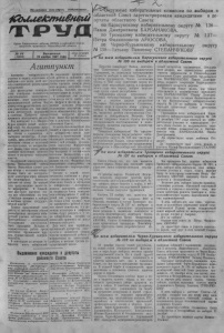 \ Пролетарии всех стран, соединя йтесь) jC b U u e fc m u fo m ii Т Р У Д -. ■ I', . Орган Ка ра с у кс к о г о райкома ВКП( б ) и ра йо нн о г о Совета д е пу т а т о в трудящихся, Но в о с и б ир с к о й области. № 8 4 I Воскресенье, (1098)_____ | 16 ноября 1947 года Цена н о м е р а 15 к оп ее к А гшппункт Агитпункт избирательного участка в период подготовки к выборам— это центр всей массово-политической работы среди избирателей. Для руководства агитпунктами подобраны политически подготовленны-е коммунисты, имеющие опыт агитационно- пропагандистской работы. Под агитпункты предоставлены лучшие помещения сел. Они снабжены литературой, журналами и газетами. Требуется только правильно использовать все это. Под агитпункт в с. Шилово- Курья отведен новый колхозный клуб. Он оборудован предвыборной наглядной агитацией, на столах — справочная и выборная литература. В агитпункте, ярко освещенном электрическим светом от колхозной электростанции, но вечерам бывает людно. Сюда после работы приходят колхозники почитать газеты и послушать последние НОВОСТИ, Заведующий агитпунктом инвалид Отечественной войны Виктор Мыльников провел уже два вечера с молодыми избирателями. Здесь же инструктируют агитаторов перед выходом на десягидворки. Агитпункт работает по плану. На каждый день предусмотрено какое-либо мероприятие. В ближайшие дни будет прочитан доклад для колхозников на тему „Советская женщина и выборы в местные органы государственной власти1. Хорошо продуманный план работы со всесторонним учетом разнообразных интересов избирателей участка составил тов. Крестьянников — заведующий Богословским агитпупктом. Здесь проводится большая и содержательная работа среди населения. Организован кружок художественной самодеятельности. В агитпункте по вечерам собирается много избирателей. По окончании производственной работы и домашних дел, колхозники охотно идут сюда, чтобы прочесть свежую газету или журнал, послушать беседу агитатора, получить ответы на интересующие их вопросы. В помещениях этих агитпунктов всегда чисто, светло, уют но. Цифры и факты из жизни родных колхозов убедительно показывают могущество советского общественного строя. На стенах, аккуратно оформленные висят биографии кандидатов в депутаты Новосибирского областного Совета. Охватить большевистской агитацией и пропагандой всю массу избирателей—такова конкретная и ответственная задача каждого агитпункта. Но не везде с ней успешно справляются. Агитпункт Морозовского избирательного участка i до сих пор находится в захламленном состоянии. Беспокойства, о приведении его в порядок не проявляют ни тов. Федоренко, как заведующий агитпунктам, ни тов. Давиденко—секретарь парторганизации. Сегодня в нашей газете печатается сообщение о регистрации кандидатов в депутаты областного Совета и обращения к избирателям. Агитпункты должны возглавить агитацию за кандидатов блока коммунистов и беспартийных. С этой задачей они справятся успешно только в том случае, если не ограничатся работой в стенах своего помещения, а с помощью агитаторов и широкого актива будут работать и с теми избирателями, которые по каким-либо причинам не могут посещать агитпункт. Дело чести всех партийных организаций превратить агитпункты б подлинные центры массово-политической работы с избирателями на предстоящих выборах в местны