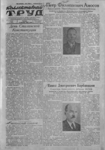 Пролетарии всех стран, соединяй тесъ\ #Ьиае£та£нбш г г & и а . Орган Карасунекого райкома ВКП(б) и районного Совета депутатов трудящихся, Новосибирской области. ъ 8 9 I Четверг, ! Ц ена н о м е р а , 1103) I 4 декабря 1947 года | t 5 к о п е е к День Сталинской Конституции У И ле т той у назад Ч р е звы ч а й н ы й V I I I В с е с о ю з н ы й с 'е з д Советов, в ы р а ж а я волю народа, принял по докладу товарища Сталина н овую К о н с т и т у ц и ю СССР . Это яв и ло с ь в е л и ч а й шим и ст о р и ч е с к им ' событием не только для со ветского н а рода, но и для вс е г о человечества, С т а л и н с к а я К о н с т и т у ция за к р еп и ла в з а к о н о д а те л ь ном порядке те о г р о м ны е и з менения в ж и з н и С С С Р , к о т о рые произошли с 1 9 2 4 го д а— со вр емени п р и н я т и я первой К о н с т и т у ц и и — до 1 9 3 6 года, когда бы л а у т в е р ж д е н а н ы н е д ейс твующ ая К о н с т и т у ц и я С С С Р . Сов етс кий народ под р у к о водством парти и Л е н и н а - Сталина прет ворил в ж и з н ь с т а л и н с к и й пла н с о ц и а л и с т и ческой и н д у с т р и а л и з а ц и и с т р а н ы и ко л л е к т и в и з а ц и и с ел ьс ко го хозя й ст в а , в рез ульт ате чего Со в е тс кий Союз и з с т р а н ы о т ст алой и слабой превра тился в м о г у ч у ю с о ц и а л и с т и ч е с к у ю и н д у с т р и а л ь н о - к о л х о з н у ю держ а в у. Б ы л и ли к в идиро ваны экспло ататорские к л а с сы , у н и ч тожена э к с п л о а т а ц и я человека чел о в е к о я . Соци али стич е с к а я собственность на орудия и средства производст ва стала эк оном ич еско й основой со ветского общества, В н аш ей с т р а не победил со ци али зм . Благо даря п р а в и л ь н о м у п р о ведению л е н и н с к о - с т а л и н с к о й национальной п ол и т и к и в Советском го с у д а р с т в е обеспечено братское со тр уд ни ч е ст в о всех народов С С С Р . ’ В о всех на ци о н а л ь н ы х р е с п у б л и к а х доетш н у т расцвет х о з я й с т в а и к у л ь т у р ы . П р е п м у щ е с г в а с о ц и а л и с т и ч е ского о бщ е ств ен но го строя, н е з нающ его с в о й с т в е н н ы х к а п и т а лизму к р и з и с о в , бе зработицы , н и щ е т ы и р а з о р е н и я , обеспечили н е у к л о н н ы й под‘ ем ж и з н е н н о г о у р о в н я т р у д я щ и х с я . С т а л и н с к а я К о н с т и т у ц и я з а к репила за г р а ж д а н а м и С С С Р завоеванные и м и в е л и ки е п р ава и св обо ды— право на труд, на о т д ы х , образование, на м а териальное обеспечение в с т а рости, а т а к ж е в с л у ч а е бо лезни и потери т рудос по собност и . С т а л и н с к а я К о н с т и т у ц и я подлинно н ародная, к аж д ая ст а ть я ее п р о н и к н у т а заботой об и н т е ресах т р у д я щ и х с я , об у к р е п лении Сов етского со циал и с т и ч е с к о г о г о су д а р ст в а . Э т а народность К о н с т и т у ц и и , ее дем о к р а т и з м сс сбеппо я р ко с к а з ы в аю т с я в пашей и збирательной системе, В С т а л и н с к о й К о н с т и т у ц и и зап и сан о , что в С С С Р вся власт ь п ри н а д л еж и т т р у д ящ и м с я города и дер е в и н в лице С о в е тов депутатов т р у д я щ и х с я . Советы я в л я ю т с я массовыми н а родными о р г а н а м и власти, в р а боте к о т о р ы х у ч а с т в у ю т м илли оны г р аж д а н . К о н с т и т у ц и я С С С Р об еспечивает д е й с т в и т е л ь ное у ч а с т и е ш и р о ч а й ш и х народн ы х масс в упр а влени и г о с у дарством. Под з н а м е н е м С т а ли н ск о й К о н с т и т у ц и и н аш народ добилс я о г р о м н ы х у с п е х о в в р а з в и ти и со ц и а л и с т и ч е с к о го строите л ьс тва , в под‘ еме хо з я й с т в а и к у л ь т у р ы со ветской ст р аны . Под з н а м е н 