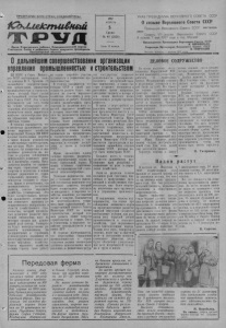 ПРОЛЕТАРИИ ВСЕХ СТРАН, СОЕДИНЯЙТЕСЬ! fChUU£Jcn%U&H6lU Орган Карасукского райкома Коммунистической партии Советского Союаа и районного Совета депутатов трудящихся Новосибирской области 1957 АПРЕЛЬ 5 Среда № 40 (2228) Цена 15 копеек. УКАЗ ПРЕЗИДИУМА ВЕРХОВНОГО СОВЕТА СССР О созыве Верховного Совета СССР Президиум Верховного Совета СССР постановляет: Созвать VII сессию Верховного Совета СССР 4 созыва 7 мая 1957 года в гор. Москве. Председатель Президиума Верховного Совета СССР К. ВОРОШИЛОВ. Секретарь Президиума Верховного Совета СССР * * г j н ГЕ0РГДДЗЕ. _______ Москва, Кремль. 1 апреля 1957 Одальнейшемсоверсштвеаонви организации управлении промышленностью истроительством ЦК КПСС и Совет Министров СССР опубликовали тезисы доклада Н. С. Хрущева «О дальнейшем совершенствовании организации управления промышленностью и строительством». который будет сделан на ближайшей сессии Верховного Совета СССР. Эти тезисы публикуются для того, чтобы на основе всенародного обсуждения, всестороннего учета имеющегося опыта выработать наиболее целесообразные формыуправления народным хозяйством страны. В тезисах указывается, что в интересах дальнейшего развитая народного хозяйства февральский Пленум ЦК КПСС признал необходимым перейти к таким формам руководства хозяйственным строительством, при которых более полно сочеталось бы конкретное и оперативное руководство на местах со строгим соблюдением центрального планового начала в масштабах страны. Предлагается перейти от управления через отраслевые министерства и ведомства к новым формам управления но территориальному принципу. Рекомендуется создание в областях, краях и республиках, где промышленность достаточно развита, советов народного хозяйства- (совнархозы). Это будет соответствовать интересам дальнейшего осуществленияленинского принципа демократического централизма в области хозяйственного строительства, который предполагает всемерное развитие творческой инициативы масс из местных органов при руководящей роли центра. Совнархозы будут непосредственно управлять подчиненными им предприятиями и стройками, руководствуясь заданиями общегосударственного плана развития' народного хозяйства. Советы народного хозяйства должны строить свою работу на основе широкого участия трудящихся в управлении промышленностью. В тезисах указывается, что Госплан СССР в своей деятельности должен будет опираться на советы народного хозяйства, объединять и .координировать их работу. Госплан должен разрабатывать предложения по развитию всех отраслей народного хозяйства, в которых тщательно учитывались бы возможности комплексного развитая экономики страны, более рационального использования ресурсов в общегосударственных интересах. Разработка планов должна начинаться на предприятиях, в соответствующих хозяйственных объединениях, в совнархозах. в Госплане республики, а затем в Госплане СССР. Кроме пятилетних планов Госплан призван разрабатывать перспективные планы на более длительный период. В новых условиях существование госэкономкомиссий становится нецелесообразным. Тезисами выдвигается вопрос о создании вместо нынешней гостехннКи инженерно-технического комитета, который будет осуществлять контроль за внедрением в народное хозяйство новейших достижений науки и техники. Указывается на' ц