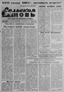 XXVI съезду КПСС- достойную встречу! ПРОЛЕТАРИИ ВСЕХ СТРАН, СОЕДИНЯЙТЕСЬ! ОРГАН КАРАСУКСКОГО РАЙКОМА КПСС И РАЙОННОГО СОВЕТА НАРОДНЫХ ДЕПУТАТОВ НОВОСИБИРСКОЙ ОБЛАСТИ СОБРАНИЕ ПАРТИЙНОГО АКТИВА Газета основана 2 октября 1930 г. Наш район в соревновании с Баганским На старте новой пятилетки Ушел в историю завершаю щий год десятой пятилетки. Он был важным этапом в работе трудовых коллективов наших районов, по достойной встрече очередного XXVI съезда КПСС. Отрадно отметить, что по целому ряду производственных показа телей этот период оказался удач ным как для карасучан, так и для баганцев. Успешно сложился год у зем ледельцев, получивших хороший урожай всех сельхозкультур. В результате оба района значите льно Перевыполнили народнохо зяйственные планы продажи зер на государству, запасли доста точное количество кормов. Стремясь закрепить и раз вить успех, земледельцы стара тельно работают над созданием прочной основы под урожай-81. Карасучане существенно пере крыли план взмета зяби, заго товив ее 91157 га. Кондицион ность семян зерновых культур доведена до 98,1 проц. Заслу живает уважения такой факт: 84,2 проц, семян отвечают нор мам первого и второго классов. А вот работа по повышению пло дородия пашни желает лучше го. Хотя годовой план по тран спортировке «органики» наши механизаторы выполнили на 113,7 проц., но на поля выве зено всего 190746 тонн перег ноя, что ниже уровня предыду щих двух лет. Неплохими темпами идет в районе ремонтная кампания. План четвертого квартала по восстановлению тракторов, к примеру, выполнен на 152 проц., а комбайнов — на 145 проц. К середине января из имеющихся в районе 956 тракторов исправ ными были 820 машин, из 393 зерновых комбайнов — 218. Соседи в чем-то из названных показателей отстают, а в чем-то опережают карасучан. Так, план четвертого квартала по ремонту тракторов и комбайнов баганцы выполнили соответственно на 136 и 167 проц. Кондицион- Вестн КОЛХОЗ ИМ. ЛЕНИНА. Став на ударную предсъездовскую вах ту, с большим трудовым подъ емом работают в первом году одиннадцатой пятилетки овцево ды колхоза им. Ленина. В настоя щее время, когда идет ягнение маток, они стараются успешно справиться с взятыми социали стическими обязательствами, до биться 100-процентной сохран № 8 (5958) ВТОРНИК, 20 ЯНВАРЯ 1981 г. Цена 2 ко*. ных семян в районе имеется 95,4 проц., в том числе первого и второго классов 70 проц. Вы ше показатель у наших сопер ников по работе с местными удобрениями, годовой план по их вывозке выполнен на 131 проц. А вот зяби заготовлено значительно меньше, задание выполнено лишь на 90 проц. Предпочтительнее позиции ка расучан в животноводстве. С го довой программой по производ ству и продаже молока труже ники ферм наших хозяйств спра вились на 101,4 проц., а ба ганцы только на 92, Л Средне районный надой от коровы со ставил соответственно 2328 и 2174 кг, рост к аналогичному показателю 1979 года • — 101 и 47 кг. Повысилось качество сдаваемой на приемные пункты продукции, в Карасукском рай оне 97,8 проц, молока отправ лено первым сортом, а в Баган- ском — 91 проц. В соревнова нии хозяйств победителем вы шел наш колхоз им. Карла Марк са, где надой от коровы доведен до 2831 кг. Самый высокий показатель у соседей имеет Ива новский совхоз — - 2460 кг. В третий раз подряд чемпи онкой района стала доярка То- каревского отделения Хорошин- ского совхоза кавалер ордена Ленина Е. Е. Приб