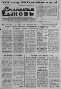 XXVI съезду КПСС-достойную встречу! ПРОЛЕТАРИИ ВСЕХ СТРАН , СОЕДИНЯЙТЕСЬ! ОРГАН КАРАСУКСКОГО РАЙКОМА КПСС И РАЙОННОГО СОВЕТА НАРОДНЫХ ДЕПУТАТОВ НОВОСИБИРСКОЙ ОБЛАСТИ Газета основана 2 октября 1930 г. № 9 (5959) ЧЕТВЕРГ, 22 ЯНВАРЯ 1981г. Цена 2 коп. ОБЕСПЕЧИТЬ ДАЛЬНЕЙШИЙ РОСТ ПРОИЗ- » | ВОДСТВА ПРОДУКЦИИ ЖИВОТНОВОДСТВА, I г ПОВЫШЕНИЕ ПРОДУКТИВНОСТИ СКОТА | | И ПТИЦЫ. ДОБИВАТЬСЯ ПОВЫШЕНИЯ ПРО- | <: ДУКТИВНОСТИ КОРОВ И УЛУЧШЕНИЯ КАЧЕ- I | CIBA МОЛОКА. ШИРЕ ИСПОЛЬЗОВАТЬ ВОЗ- ( « МОЖНОСТИ РОСТА ПРОИЗВОДСТВА ГОВЯ- | | ДИНЫ ПУТЕМ ИНТЕНСИВНОГО ВЫРАЩИВА- | I НИЯ И ОТКОРМА МОЛОДНЯКА КРУПНОГО I I РОГАТОГО СКОТА, СОКРАЩЕНИЯ СРОКОВ i f ОТКОРМА. ОСУЩЕСТВИТЬ МЕРЫ ПО РАСШИ- | | РЕНИЮ МЯСНОГО СКОТОВОДСТВА И ПТИЦЕ- | | ВОДСТВА. | (Из проекта ЦК КПСС к XXVI съезду партии). ' | | ____ В РАЙКОМЕ КПСС. РАЙИСПОЛКОМЕ. РАЙКОМЕ ПРОФСОЮЗА ОБ ИТОГАХ СОЦИАЛИСТИЧЕСКОГО СОРЕВНОВАНИЯ колхозов, совхозов, работников животноводства по производству и продаже государству продуктов животноводства за 1980 год Претворяя в жизнь решения XXV съезда КПСС, развернув широкое социалистическое со ревнование за достойную встре чу XXVI съезда партии, тружени ки животноводческих ферм сов хозов и колхозов проделали оп ределенную работу по увеличе нию производства и продажи го сударству продуктов животно водства в 1980 году. Государству продано 362298 ц молока. В срав нении с 1979 годом увеличена продажа молока государству на 14467 ц. Пятилетний план прода жи молока выполнен на 104 про цента, продано 1718901 ц. В 1980 году продано 50345 ц мяса, 3954 ц шерсти. Рассмотрев итоги социалисти ческого соревнования колхозов, совхозов, работников животно водства за 1980 год, бюро РК КПСС, исполком районного Сове та народных депутатов, президи ум райкома профсоюза работ ников сельского хозяйства по становляют: 1. Признать победителем со г циалистического соревнования среди колхозов колхоз им. КУЙ БЫШЕВА (председатель т. Гиди- он X. Я., секретарь парторгани зации т, Бусель Н. Н., председа тель профкома т. Белянский А. Н.) Колхоз выполнил народнохо зяйственные планы по продаже государству молока на 110,1 про цента, мяса на 100,1 процента, шерсти на 101,7 процента, сдал 98,2 процента молока первым сортом, средний сдаточный вес одного животного крупного ро гатого скота составил 387 кг. По лучил на 100 коров 100 телят, на доил на фуражную корову 2804 кг молока, увеличил надой в сравнении с 1979 годом на 291 кг, выполнил планы выходного по головья скота, обеспечил хоро шую сохранность его. Вручить колхозу переходящее Красное знамя, наградить По четной грамотой бю£о РК КПСС, исполкома районного Совета Народных депутатов, президиу ма райкома профсоюза работни ков сельского хозяйства, занес ти на районную доску Почета. Признать победителем социа листического соревнования сре ди совхозов совхоз «ОКТЯБРЬ» (директор т. Клюев М. А., сек ретарь парткома т. Супрун И. Н., председатель рабочего комите та т. Мергель В. Е.). Совхоз вы полнил народнохозяйственный план по молоку на 105,1 процен та, по мясу на 101,8 процента. 100 процентов молока сдано пер вым сортом, надой на фураж ную корову составил 2414 кг, что больше чем в 1979 году на 125 кг. Совхоз получил на 100 коров 105 телят, выполнил пла ны выходного поголовья круп ного рогатого скота. Вручить совхозу переходящее Красное знамя, наградить сов хоз Почетной грамотой бюро РК КПСС, исполкома районного Совета народных депутатов, пре зидиума райкома профсоюза ра ботн