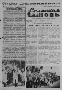 Сегоднл — Делъ советской печати Служить идеалам КОММУНИЗМА ПРОЛЕТАРИИ В СЕХ СТ РАН, С ОЕДИ НЯЙТЕСЬ! Нет призвания более высокого и задачи более ответственной, чем нести в массы великие идеи коммунизма. Эту важнейшую мис сию вместе с другими идеологическими работниками нашей страны выполняют и журналисты — активные проводники политики партии. Великой силой коммунистической убежденности, страстности, талан том воздействуют они на умы и сердца советских людей, способст вуют духовному формированию человека нового общества. Партия всегда видела и видит в печати, телевидении и радиовещании могу чее идеологическое оружие, средство коммунистического воспитания и организации масс. Слово, напечатанное в газете или прозвучавшее в эфире, поль зуется большим авторитетом. Оно мобилизует трудящихся на ус пешное выполнение задач коммунистического строительства. По вседневная творческая практика советской журналистики богата при мерами активного влияния на ход дел, воспитания кадров в духе высокой личной ответственности за порученную работу, энергичной поддержки нового, передового, бескомпромиссной борьбы с не достатками. Особенно ответственные задачи стоят перед работниками газет, радио и телевидения в связи с пропагандой решений, идей истори ческого XXVI съезда партии, по мобилизации трудовых коллективов на успешное выполнение планов первого года и одиннадцатой пя тилетки в целом. Сейчас многие из них включились в соревнование за выполнение годового плана к 7 ноября, и долг журналистов — широко показывать трудовой энтузиазм, достижения и успехи, пути поисков резервов, борьбу за повышение эффективности и качества производства. Немало в этом отношении делает районная газета «Сельская новь». «Решения XXVI съезда КПСС — выполним!», «За экономию и бережливость», «Говорят участники соревнования», «Из опыта ра боты», «Работать без отстающих», «Воспитанию — комплексный под ход», «Образ жизни — советский» — вот те рубрики, которые на шли постоянное место на страницах нашей газеты и в полной мере отражают большие цели, задачи и многогранную жизнь тружеников района. Конкретными, содержательными, оперативными и боевыми материалами журналисты газеты «Сельская новь» мобилизуют, вдох новляют карасучан на большие трудовые успехи и победы, воспиты вают в них высокие идейно-политические и нравственные качества, ^рассказывают о лучших людях района, о великих преимуществах со ветского образа жизни, который является главным достижением со циализма. И не потому ли так стремительно растет тираж нашей газеты, составляющий в нынешнем году около 10,5 тысяч экземпляров, не потому ли все больше и больше друзей появляется у «Сельской нови»! Сейчас в активе «районки» — более 120 рабочих и сельских корреспондентов, которые по зову сердца, проявляя высокую об щественную активность и ответственность, сотрудничают с газетой, присылая интересные статьи, корреспонденции и заметки. В них ра бочие, колхозники, учителя, врачи, библиотекари пишут об успехах коллективов, о передовиках производства, их жизни. Всем им мы говорим сердечное спасибо, и прежде всего — машинисту локомотивного депо К. В. Гаврилову, начальнику Троиц кого отделения связи Т. А. Евсюкову, прорабу ГОРЕМа-31 М. Г. Сте панову, секретарям партийных организаций П. 3. Туру, А. И. Мистюк, А. В. Колещато