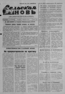В РК КПСС, райисполкоме, РК профсоюза П РОЛЕТАРИИ ВСЕХ СТРАН, СОЕДИНЯЙТЕСЬ! ОРГАН КАРАСУКСКОГО РАЙКОМА КПСС И РАЙОННОГО СОВЕТА НАРОДНЫХ ДЕПУТАТОВ НОВОСИБИРСКОЙ ОБЛАСТИ Газета основана 2 октября 1930 г. № 96 (6046) ЧЕТВЕРГ, 13 АВГУСТА 1981 г. Цена 2 коп. В ЦК КПСС и Совете Министров СССР Увеличить выпуск товаров, улучшить их качество Центральный Комитет КПСС и Совет Минист ров СССР приняли постановление «О мерах по уве личению производства товаров первой необходи мости в 1981 — 1985 годах и более полному удов летворению спроса населения на эти товары» и «Об увеличении производства товаров массового спроса, повышении качества и улучшении их ас сортимента в 1981 — 1985 годах». В целях обеспечения практической реализации решений XXVI съезда КПСС о неуклонном подъ- еме материального и культурного уровня жизни народа в постановлении «О мерах по увеличению производства товаров первой необходимости в 1981 — 1985 годах и более полному удовлетворе нию спроса населения на эти товары» предусмот рен комплекс мер по ускорению развития произ водства указанных товаров. Предусмотрено, в частности, обеспечить строительство в городах и ^ййоиных центрах, имеющих свободные трудовые ресурсы, специализированных предприятий малой мощности по выпуску ряда товаров. В постановлении «Об увеличении производства товаров массового спроса, повышении качества и улучшении их ассортимента в 1981 — 1985 годах» министерствам и ведомствам СССР и Советам Министров союзных республик установлены за дания по производству ряда товаров культурно- бытового и хозяйственного назначения. В постановлении указаны дополнительные меры по повышению экономической заинтересован ности предприятий тяжелой индустрии в макси мальном использовании имеющихся производст венных мощностей для дальнейшего увеличения выпуска товаров культурно-бытового и хозяйст венного назначения, улучшения их ассортимента и качества. Для осуществления намеченной программы по расширению производства промышленных това ров народного потребления предусмотрено зна чительное увеличение капиталовложений в 1981 — 1985 годах. Центральный Комитет КПСС и Совет Ми нистров СССР считают, что расширение произ водства и улучшение качества товаров народно го потребления приобретают в настоящее время первостепенное значение в реализации решений XXVI съезда партии по подъему благосостояния советского народа и наиболее полному и всесто роннему удовлетворению все возрастающих запро сов населения и требуют от партийных, совет ских, хозяйственных и профсоюзных органов на всех уровнях принятия конкретных мер для обес печения выполнения заданий. (ТАСС) / Об итогах выполнения задания декадника на заготовке кормов колхозами и совхозами района Бюро райкома КПСС, исполком районного Совета народных де. путатов, райком профсоюза работников сельского хозяйства подве ли итоги выполнения задания декадника с 1 по 10 августа на за готовке кормов хозяйствами района. Победителем соревнования по выполнению задания декадника на заготовке кормов среди совхозов признан совхоз мясной «Карасук- ский» (директор т. Дибров И. П., секретарь парторганизации т. Усатый В. Г., председатель рабочкома т. Кудайбергенов Н. Б.) Сов хоз за десять дней заготовил 3020 ц сена, годовой план заготовки сена выполнил на 119,4 процента. Среди колхозов победителем соревнован