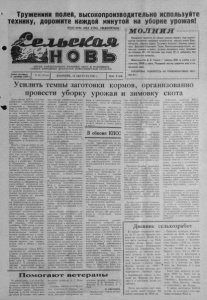 Труженики полей, высокопроизводительно используйте технику, дорожите каждой минутой на уборке урожая! П РОЛЕТАРИИ ВСЕХ СТРАН, СОЕДИНЯЙТЕСЬ! 1 > * i i * i I f ОРГАН КАРАСУКСКОГО РАЙКОМА КПСС И РАЙОННОГО СОВЕТА НАРОДНЫХ ДЕПУТАТОВ НОВОСИБИРСКОЙ ОБЛАСТИ Газета основана 2 октября 1930 г. -V 98 (6048) ВТОРНИК, 18 АВГУСТА 1981 г. Цена 2 коп. I t I * * * * И МОлния f f Прекрасно трудится на уборке урожая первого года одинна- * дцатой пятилетки передовой механизатор совхоза имени Дзер- { жинского, кавалер ордена Трудового Красного Знамени комму- * нист Дмитрий Степанович Таран. Высокопроизводительно ис- * пользуя технику и время, ветеран ежедневно косит зерновые j на площади 40 — 48 гектаров при норме 16 га, добиваясь при , этом отличного качества. * Обязательство Д. С. Тарана — скосить 500 га хлебов и на- * молотить 2000 ц зерна. Передовой мастер уверенно идет к на- * меченной цели. > ХЛЕБОРОБЫ, РАВНЯЙТЕСЬ НА ПРАВОФЛАНГОВЫХ ЖАТ- J ВЫ-81! J Усилить темпы заготовки кормов , организованно провести уборку урожая и зимовку скота Бюро обкома КПСС, заслушав информации руководителей об ластных сельскохозяйственных организаций и некоторых рай онов, в принятом постановлении отмечает, что в сложных услови ях лета текущего года многие колхозы, совхозы и целый ряд районов организованно ведут за готовку кормов, подготовили всю уборочную технику, получают вы сокую продуктивность животных на выпасах. Успешно справились с выполнением планов заготовки сена труженики Усть-Таркского, Каргатского, Венгеровского, Ча- новского и Убинского районов, травяной муки — Кочковского, Каргатского и Чулымского рай онов. Вместе с тем не может не вы зывать тревогу и озабоченность тот факт, что в целом по. области по состоянию на 7 августа теку щего года заготовлено лишь 73 процента сена, 30 процентов се нажа и 68 процентов травяной муки, а в хозяйствах Баганско- го, Ордынского, Тогучинского и Болотнинского районов запасе но сена менее 50 процентов к по требности, отстают по производ ству травяной муки Кыштовский, Здвинский и Сузунский районы. Однако в этих и ряде других рай онов партийные организации, ру ководители и специалисты про изводственных управлений сель ского хозяйства райисполкомов, колхозов и совхозов не проявля ют должной активности в моби лизации трудовых ресурсов и тех нических средств на усиление темпов заготовки кормов. Из-за слабого контроля и низ кой требовательности руководите лей областных сельскохозяйствен ных органов к руководителям и специалистам производственных управлений сельского хозяйства райисполкомов, колхозов и сов хозов, а также подразделений «Сельхозтехники» к началу мас совой уборки не подготовлено 809 зерновых, 1418 силосных комбайнов, 2053 жатки и значи тельное йЬличество других ме ханизмов. Плохо готовится зер ноочистительная техника, су шильное хозяйство как в колхо зах и совхозах, так и на хлебо приемных пунктах. Медленными темпами ведется сев озимых, подъем зяби и уборка с полей соломы. Новосибирский горком КПСС, горисполком не обеспечили вы полнение заданий по посылке на уборку и прополку овощных плантаций, заготовку кормов ра бочей силы и автомобильного транспорта. В результате в хо зяйствах пригородной зоны до сих пор нс все площади овощ- Помогают ветераны На центральном отделении Ка лачинского совхоза из числа пен сионеров, ветеранов труда и вой ны создана бригада 