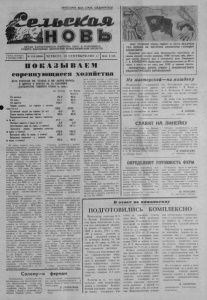 ПРОЛЕТАРИИ ВСЕХ СТРАН, СОЕДИНЯЙТЕСЬ! ОРГАН КАРАСУКОКОГО РАЙКОМА КПСС И РАЙОННОГО СОВЕТА НАРОДНЫХ ДЕПУТАТОВ НОВОСИБИРСКОЙ ОБЛАСТИ Газета основана 2 октября 1930 г. ПОКАЗЫВАЕМ соревнующиеся хозяйства ДЕЛА КОЛХОЗОВ ИМ. ЛЕНИНА И ИМ. КАРЛА МАРКСА В ЦИФРАХ И ФАКТАХ НА 22 СЕНТЯБРЯ ВЫПОЛНЕНИЕ ГОДОВОГО ПЛАНА (в проц.) им. Ленина По молоку 86,8 96,6 По мясу 81,1 82,4 По шерсти 108,7 78,7 Надой молока на корову с начала года (в кг) 1952 2235 Суточный надой на корову (в кг) 6,0 6,1 Сдано молока первым сортом 99,5 98,9 Среднесдаточный вес одного животно го (в кг) 417 367 Настриг шерсти с овцы (в кг) 3,8 2,9 Заготовлено сена (в проц, к плану) 92,8 107,1 Засыпано семян зерновых культур (в проц, к плану) • 100,0 100,0 Вспахано зяби (в проц, к плану) 80,0 106,7 Вывезено перегноя с начала года (в проц- к плану) 95,6 84,6 До конца первого года один надцатой пятилетки остается не многим более трех месяцев. Жи вотноводы соревнующихся меж ду собой колхозов им. Ленина и им. Карла Маркса близки к выполнению годовых планов по продаже молока государству, У первых выполнение на 16 сен тября составило 86,8 проц., у вторых — 96,6 проц. По произ водству этой продукции ирби зинцы несколько опережают сво их соседей. Так, в колхозе им. Карла Маркса от каждой фу ражной коровы получили с на чала года по 2235 кг, а в кол хозе им. Ленина — по 1952 кг молока. И те, и другие по срав нению с прошлым годом увели чили надои соответственно на 124 и 49 кг. Качественные показатели про изводимой, продукции почти одинаковые. В колхозе им. Ле нина первым сортом сдано 99,5 проц., у их соседей — 98,9 проц, молока. Суточные надои в этих хозяйствах сейчас, можно ска зать, на одном уровне. Белен- .ские доярки надаивают по 6,0 кг, ирбизинские получают на 100 граммов больше. Соревнующиеся колхозы прак тически не отстают друг от друга в выполнении планов по сдаче мяса. Ирбизинские жи вотноводы годовое задание вы полнили к 16 сентября на 82,4 проц., их соперники — на 81,1 проц. А вот качественные пока затели сдаваемого на мясокомби нат скота значительно лучше у мастеров откорма колхоза им. Ленина. Здесь среднесдаточный вес одного животного составил 417 кг, в то время как в колхо зе им. Карла Маркса лишь .367 кг. Чтобы выйти на уровень своих соперников по. соревнова нию, нрбизннцам надо должное внимание уделить организации выращивания молодняка на от кормочной площадке. Солому — к фермам Максимально используют все возможности для накопления кор мов общественному стаду тру женики совхоза «Октябрь». В хозяйстве быстро идет уборка соломы с полей и подвозка ее к местам зимовки скота. Специ- №114 (6064) ЧЕТВЕРГ, 24 СЕНТЯБРЯ-1981 Г.я Цена 2 коп. им. Карла Маркса Успешно сработали в нынеш нем году беленские овцеводы, ко торые выполнили годовой план продажи шерсти на 108,7 проц. Средний настриг шерсти с ов- цы составил 3,8 кг. У их соседей этот показатель значительно ни же — 2,9 кг, что, конечно же, отразилось на выполнении зада ния по сдаче этого сырья госу дарству, Ирбизинцы справились с годовым планом лищь на 78,7 проц. В ближайшее время начнется стойловый период содержания животных. В комплексе подго товиться к этому этапу, органи зованно вступить и успешно про вести зимовку общественного стада — первоочередная зада ча специалистов и работников животноводства. Очень трудный экзамен на хле боробское мастерство выдержа ли нынче полеводы обоих хо зяйств. И все же высокая куль тура земледелия, несмотря на засуху, по