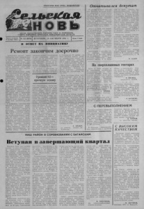 Отчитывался депутат ПРОЛЕТАРИИ ВСЕХ СТРАН, СОЕДИНЯЙТЕСЬ! ОРГАН КАРАСУКСКОГО РАЙКОМА ‘ КПСС И РАЙОННОГО СОВЕТА НАРОДНЫХ ДЕПУТАТОВ НОВОСИБИРСКОЙ ОБЛАСТИ Газета основана 2 октября 1930 г. В ОТВЕТ ил ИНИЦИАТИВУ Ремонт закончим досрочно Земледельцы колхоза имени Куйбышева взяли неплохой старт в одиннадцатой пятилетке. Нын че они организованно провели комплекс весенне-летних агро- мероприятиц, одними из первых в районе закончили уборочную страду. Добиться этого помо гла заблаговременная и тщатель ная подготовка к ней. Сейчас полеводы ведут широ кую подготовительную работу к очередному сезону. В этой ответ ственнейшей кампании нет вто ростепенных вопросов, отноше ние к-решению каждого из них — самбе серьезное. Результаты такого подхода к делу налицо. До высоких кондиций доведе ны семена зерновых культур, причем вся пшеница только пер вого класса. В первой декаде ок тября колхоз справился с пла ном взмета зяби и продолжает осеннюю пахоту под весь яро вой сев. Совсем немного оста лось поработать до выполнения годового плана вывозки на па ровые поля органических удоб рений. С одобрением отнеслись куй бышевцы к инициативе труже ников Колыванского, Купин- ского и Чановского районов по подготовке сельскохозяйствен ной техники к полевым работам 1982 года. Следует отметить, что механизаторы нашего хозяй ства уже многое , сделали в ре шении и. этбго вопроса. Взять, к примеру, прицепной инвентарь, который будет использоваться в весенней кампании. Большая часть его уже поставлена на линейку готовности. Еще в ию не были отремонтированы все зерновые сеялки. Каждый ме Вступая в завершающий квартал Немногим более двух месяцев осталось до конца стартового го да одиннадцатой пятилетки. Для сельских тружеников на ших районов, расположенных в так называемой зоне рискован ного земледелия, он выдался очень тяжелым. Редкая по силе засуха, продолжавшаяся боль шую часть лета, пагубно отра зилась на состоянии дел как в полеводстве, так и в животновод стве. И все же сельчане, актив но участвующие в социалисти ческом соревновании по претво рению в жизнь намеченных XXVI съездом КПСС задач, добились определенных успехов во всех сферах производства.. Радует то, что карасукские животноводы продолжают уве ренно удерживать позиции лиде ров. Годовой план по продаже молока за девять месяцев наш район выполнил на 88 процентов, причем 96,5 проц, продукции от правлено на приемные пункты первым сортом. Надой на ко рову за этот период составил в среднем 1960 килограммов, а в колхозе имени Карла Маркса — 2444 кг. Аналогичные показатели сосе дей несколько ниже. Годовой план по молоку на 1 октября баганские животноводы выпол нили на 84 проц. Первосортной № 125 (6075) ВТОРНИК, 20 ОКТЯБРЯ 1981 г. Цена 2 коп. ханизатор готовил закрепленный за ним сеятельный агрегат и ставил его на машинный двор только после проверки специаль ной комиссией. Летом, до на чала сенокоса, занимались ре монтом зубовых борон, которые также в основном готовы. В колхозе, к сожалению, до сих пор нет типовой ремонтной мастерской с набор >м специаль- Урожаю-82 — прочную основу ного оборудования, потому рес таврация техники ведется в ос новном под , открытым небом. Механизаторы хорошо исполь зовали теплую, сухую погоду, стоявшую в сентябре. Уже во второй декаде его активно раз вернулась отладка уборочных машин. В итоге к сего