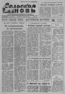ПРОЛЕТАРИИ ВСЕ Х СТРАН, СОЕДИНЯЙТЕСЬ! ОРГАН КАРАСУКСКОГО РАЙКОМА КПСС И РАЙОННОГО СОВЕТА НАРОДНЫХ ДЕПУТАТОВ НОВОСИБИРСКОЙ ОБЛАСТИ Газета основана 2 октября 1930 г. № 13 (6748) СУББОТА, 1 ФЕВРАЛЯ 1986 г. Цена 3 коп. 15 февраля-коммунистический субботник Примем активное участие Заблаговременно начал гото виться к коммунистическому субботнику, посвященному XXVII съезду КПСС, коллектив райпи щекомбината. Создан штаб по организованному проведению праздника труда, определен объем работы на этот день. Все го в субботнике примут участие более 80 человек, из них третья часть займется благоустройст вом и санитарной очисткой тер ритории, сбором металлолома, остальные будут трудиться на рабочих местах. В этот день бу дет выпущено 5 тонн кондитер ских и сахаристых изделий на 6 тыс. рублей. В фонд двенад цатой пятилетки будет перечис лено 200 рублей. Г. КНАУС, технорук пищекомбината. XXVII СЪЕЗДУ КПСС- ДОСТОЙНУЮ ВСТРЕЧУ! ПО, ГОРОДУ РАЙОНУ Наш район в соревновании с Баганским Не останавливаясь на достигнутом В завершившемся 1985 го ду труженики агропрома Ка- расунекого и Баганского рай онов внесли определенный вклад в дело реализации Про довольственной программы. Весомых успехов добились коллективы молочно-товарных ферм. Годовой план продажи молока оба района выполнили на 107 процентов. Рост произ. водства этой ценной продук ции у нас составил 4 процен та, а у соседей — 7. Обеспе чено увеличение продуктив. ности скота. В Карасукском районе надой к уровню 1984 года поднялся на 86 кило граммов, в Баганском — на 133 и составил соответственно 2314 и 2151 килограмм, что не может не радовать. Карасукские мастера молоч. него цеха по-прежнему прочно удерживают позиции лидеров как в коллективном, так и в индивидуальном соревновании. Так, если в колхозе им. Мичу. рина получено от коровы по 2795 килограммов, то в луч. шем у соседей опытно.произ. водственном хозяйстве Севе- ро.Кулундинской опытной станции (ОПХ СКОС) надой составил 2584 килограмма. В нашем районе 30-центнеровый рубеж перешагнули тридцать три доярки, а в Баганском — лишь две. Чемпионками стали О. И. Лемп из Калачинского совхоза и А. Я. Робенсдорф из ОПХ СКОС, получившие соот. ветственно 3416 и 3084 кило, грамма молока. К сожалению, оба райойа снизили качество отправляе мой государству продукции. Баганцы продали молока пер. вым сортом 90,6 процента, а карасучане — 87,9. Произо. шло это из-за ухудшения са нитарного состояния ферм и заболевания животных. Оба района перевыполнили доведенные планы продажи скота, несколько увеличили объем его поставок на мясо комбинат к уровню предыду. щего года. Но что касается ка. явственных показателей, то они ухудшились. Снизился среднесдаточный вес живот ных: в нашем районе он сос тавил только 364 килограмма, а у соседей — еще меньше — 350. Уменьшилось количество скота высшей и средней упи танности: в Карасукском райо, не оно составило 83, в Баган ском — 76 процентов. Это ста ло результатом того, что слиш. ком много отправляется на вы. нужденный забой мелковесно. го, недостаточно упитанного скота. Хотя в обоих районах имеются хозяйства, показы вающие пример хорошо орга. низованной работы мясного цеха. Так, в колхозе им. Ле нина среднесдаточный вес жи. вотного составил 416 кило граммов, а ОПХ СКОС 91 про цент скота отправило на мясо. комбинат высшей и средней упитанности. На них должны равняться и остальные. Не добились