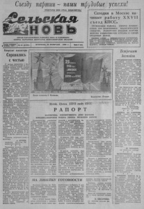 Съезду партии- наши трудовые успехи! ПРОЛЕТАРИИ ВСЕХ СТРАН, СОЕДИНЯЙТЕСЬ! — --- ............ — - ..... . .............. , , ,, ,■■■■■< ОРГАН КАРАСУКСКОГО РАЙКОМА КПСС И РАЙОННОГО СОВЕТА НАРОДНЫХ ДЕПУТАТОВ НОВОСИБИРСКОЙ ОБЛАСТИ Газета основана 2 октября 1930 г Рапортуют инициаторы Справились с честью С честью справились с вы- сокими обязательствами по до', стойной встрече XXVII съезда партии труженики Калачин ского совхоза. Пятилетнюю программу по продаже молока калачинские животноводы реализовали еще в конце августа 1985 года, от правив сверх , нее государству более 10 тысяч центнеров вы сококачественной продукции. Задание одиннадцатой пяти летки по поставкам скота вы полнено на квартал раньше срока, сверх плана поставлено 600 центнеров мяса. Програм ма 1985 года по производству этих видов животноводческой продукции также выполнена значительно раньше намечен ного. Уверенно вступили коллек тивы ферм в стартовый год двенадцатой пятилетки. Благо, даря широкому размаху пред съездовского соревнования, высокому уровню организации труда животноводы обеспечива ют в стойловый период хоро. іпую продуктивность скота. Квартальное задание по про. даже мяса в количестве 1500 центнеров уже перекрыто. В канун открытия партийного съезда выполнен и план двух месяцев по сдаче молока. Особенно весомый вклад в успех животноводов внесли труженики Павловского отде ления. А в индивидуальном предсъездовском соревновании отличились А. В. Швенк, Е. Ф. Филинова, Е. Ф. Бартель. С. Я. Баль и другие славные труже. ники. Успешно встретили съезд и полеводы. А. КРОММ, секретарь парткома Ка лачинского совхоза. * * * Труженики колхоза «Новая семья», являясь инициатора ми по достойной встрече-XXVII съезда КПСС, успешно' спра вились с государственными планами . продажи животновод ческой продукции. Так, пятилетнее задание по реализации мяса, молока и шерсти выполнено досрочно, план 1985 года по всем пока зателям завершен также до срочно. С большой ответствен, ностью отнеслись чернокурь. инцы к решению поставленных задач, чтобы подготовить до стойный трудовой подарок съез ду партии. Постарались меха- низаторы, заранее подготовили технику к весенне-полевым ра ботам. Наибольший вклад в до стигнутый успех внесли опыт ные животноводы хозяйства те лятницы Н. Н. Дудко, В. С. Лысова, скотник откорма А, И. Ледник, дойный гурт № 2, ме. ханизаторы А. С. Будко, А. П. Игашев. В этот знаменательный для каждого труженика день, жи вотноводы и механизаторы кол хоза «Новая семья» рапортуют съезду о большой проделанной работе и Заверяют что и впредь будут трудиться не снижая темпов. № 24 (§759)' Сегодня в Москве на чинает работу XXVII съезд КПСС. ТРУЖЕНИКИ РАЙОНА, ГОРЯЧО ПРИВЕТ СТВУЯ ЭТО ВАЖНЕЙШЕЕ ПОЛИТИЧЕСКОЕ СОБЫТИЕ, РАПОРТУЮТ РОДНОЙ ПАРТИИ, ФОРУМУ КОММУНИСТОВ СТРАНЫ О СВОИХ ТРУДОВЫХ ДЕЛАХ. ПЕРВОЕ СЛОВО — ИНИЦИАТОРАМ СОРЕВНОВА НИЯ ЗА ДОСТОЙНУЮ ВСТРЕЧУ XXVII СЪЕЗДА ПАР ТИИ — КОЛЛЕКТИВАМ ЛОКОМОТИВНОГО ДЕПО, КАЛАЧИНСКОГО СОВХОЗА, КОЛХОЗОВ им. КАРЛА МАРКСА, «НОВАЯ СЕМЬЯ». ВТОРНИК, 25 ФЕВРАЛЯ 1986 г. Цена 3 ков р КОЛЛЕКТИВА ЗАПАДНО-СИБИРСКОЙ Руководствуясь решениями XXVI съезда КПСС, последу, ющими Пленумами Централь, ного Комитета, готовя достой ную встречу XXVII съезду партии, коллектив досрочно, 14 декабря 1985 года, выпол нил планы одиннадцатой пяти, летки, дополнительно переве. зено 3,7 миллиарда тонно-ки лометров брутто грузов. В сравнении 