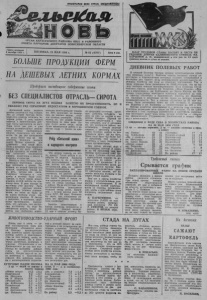 ПРОЛЕТАРИИ ВСЕХ СТРАН, СОЕДИНЯЙТЕСЬ! ПЯТНИЦА, 23 МАЯ 1986 г. № 62 (6797) Цена 8 коп. Газета основана 2 октября 1930 г. ОРГАН КАР АСУ некого РАЙКОМА КПСС И РАЙОННОГО СОВЕТА НАРОДНЫХ ДЕПУТАТОВ НОВОСИБИРСКОЙ ОБЛАСТИ БОЛЬШЕ ПРОДУКЦИИ ФЕРМ ФЛАГ ТРУДОВОЙ СЛАВЫ ПОДНЯТ В ЧЕСТЬ ПЕ РЕДОВОИ ДОЯРКИ КАЛИНОВСКОГО СОВХОЗА МА- КАРЦОВОИ А. Н., надаивающей в эти дни по 15 килд- граммов молока в сутки от коровы. ДНЕВНИК ПОЛЕВЫХ РАБОТ НА ДЕШЕВЫХ ЛЕТНИХ КОРМАХ Проверяем пастбищное содержание скота БЕЗ СПЕЦИАЛИСТОВ ОТРАСЛЬ-СИРОТА ПЕРЕВОД СКОТА НА ЛУГА ПОДНЯЛ ОБНАЖИЛ РЯД СЕРЬЕЗНЫХ Ароматный запах парного молока разносился над степью. Это во второй бригаде Хоро- шинского-, совхоза началась ве черняя дойка. В день нашего приезда к животноводам дой ные гурты находились на паст бище всего два . дня, а уже налицо положительные резуль таты. Начало прибавляться молоко, повысилась его жир ность. За два дня пребывания на лугах более чем на три центнера поднялся валовой надой. Можно привести для сравнения еще такой факт. Если в прошлом году жирность молока на эту дату состави ла 3,4 процента, то нынче 3,9, что , позволяет труженикам сдавать продукцию в зачете в большем количестве. Немалую роль сыграла свое временная подготовка доиль ных площадок к сезону. На пример, во второй бригаде она крытая, подведена теплая во да, есть загоны для скота. Скотники заботятся о том, чтобы в загонах было сухо. Правда, о быте самих живот новодов особой заботы не про явили пока. В день выхода на пастбища уже должны быть оформлены красные уголки, разработаны условия соревно вания, но этого не было ни на одном полевом стане жи вотноводов совхоза. В беседе с доярками, в основном, опыт ными труженицами, выясни лось, что работать они настро ены по-боевому. Но надо бы конкретней решать такие во просы, как снабжение живот- ЖИВОТНОВОДСТВО-УДАРНЫЯ ФРОНТ Конец мая и июнь — са мая благоприятная пора для получения «большого» моло ка. Поэтому руководителям всех хозяйств важно проявить особую заботу о животновод стве на этот период, чтобы не упустить молоко. Но в неко торых хозяйствах, например, в совхозах Студеновском и им. Дзержинского до сих пор пол ностью не выведены дойные гурты на круглосуточную пастьбу. Поздно вывели на лу га животных в Калачинском совхозе. Эта задержка связа на с несвоевременой подготов СУТОЧНЫЕ НАДОИ МОЛОКА 1 гр. — надой от коровы в ющему периоду 10,2 +.0,2 9,9 — 0,7 9,7 — 0,3 9,6 + 1,8 9,4 + 1,7 9,4 — 0,5 8,7 + 0,2 8,6 + 0,6 8,0 — 0,5 8,0 — 1,7 «Новая семья» Калачинский им. Мичурина им. К. Маркса «Российский» им. Куйбышева Калиновский им. Ленина им, Дзержинского ИМ. Калинина ЗАМЕТНО ИХ В ХОРОШИНСКОМ НЕДОСТАТКОВ новодов необходимыми товара ми. Нет, например, ни полоте нец, не хватает марли, хала тов нужных размеров. Понра вилось то, что Душой болеют труженики За свое дело На дои будут выше тогда, когда будет проявляться забота о ка честве стада — таково их мне ние. Рейд «Сельской нови» и народного контроля Что можно сказать по это му поводу? Такая работа в хо зяйстве не ведется. Закрыты все пункты (а их в совхозе три) искусственного осемене ния, потому что нет здесь на сегодняшний день ни одного техника-осеменатора, нет зоо техника-селекционера, плем- учетчиков, не хватает ветвра чей. А ведь Хорошинский сов хоз имеет более 4 тысяч го лов крупного рогатого скота — одно из самых крупных стад в районе. Ир-за отсутствия зоо- ветспециалйстов д