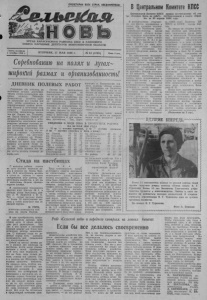 ОРГАН КАРАСУКСКОГО РАЙКОМА КПСС И РАЙОННОГО СОВЕТА НАРОДНЫХ ДЕПУТАТОВ НОВОСИБИРСКОЙ ОБЛАСТИ В Центральном Комитете КПСС Центральный Комитет КПСС принял постановление «О ста тье «Сколько брать на себя?», опубликованной в газете «Прав да» за 20 апреля 1986 года. Газета основана 2 октября 1930 г. Соревнованию на полях и лугах- широкий размах и организованность! ДНЕВНИК ПОЛЕВЫХ РАБОТ Считанные дни остались до истечения лучших /агротехни ческих сроков размещения зер новых культур. Полеводы большинства хозяйств райо на прилагают все усилия для того, чтобы уложиться в за планированный график посев ной. Близки к окончанию сева главной продовольственной культуры земледельцы колхо зов им. Ленина, им. Тельмана, им. Карла Маркса. Однако от дельные руководители и агро специалисты совершенно неоп равданно низкими темпами ве- дут размещение пшеницы. Ме нее половины отведенных под нее площадей до ' сих пор ос воено в совхозах «Октябрь», «Российский», им. Дзержин ского, в колхозах им. Ждано ва, им. Калинина. Такое спо койствие не имеет под собой никаких оснований, болёе то го, оно чревато недобором урожая. Надо принять все ме ры, чтобы посеять пшеницу до конца мая. Стада на пастбищах С выходом дойных гуртов на луга заметно возросли на дои в колхозе им. Карла Мар кса: 10,5 килограммов молока в сутки от коровы — таков сегодняшний итог работы жи вотноводов хозяйства, а это на 1 килограмм больше прошло годнего уровня. В соревновании тружеников впереди идет бригада № 1, в группах коров передовых доя рок Л. Ф. Мареевой и В. П. Тур — самые высокие надои — более 12 килограммов мо лока в сутки получают они от каждой коровы. М. ГОРБ, зоотехник-селекционер кол хоза им. Карла Маркса. В мае преобразилась приро да: зазеленели деревья, запе стрели луга. А яркое солнце дает рост разнотравью. Как раз в это время и наступает важный момент для более пло дотворной работы животново дов. С выводом стада на де шевые корма есть хорошая возможность для повышения его продуктивности. Бывая на местах летних до ек в первые дни перехода на пастбища, почти везде сталки ваешься с такой проблемой: если есть еще недоделки, то это не беда, ведь только на чало, успеем все сделать. Так и в колхозе им. Мичурина, где # недавно пришлось побывать/ Не придали здесь особого зна чения работе агитаторов, нет наглядной агитации. А ведь известно, что организация со ревнования и наглядное его от ражение играют большую роль в выполнении, намеченных пла нов. Не следует делать ссыл ку на то, что трудятся здесь опытные добросовестные дояр ки, сами понимают важность эадач. Вот если бы готовиться Я предстоящей кампании свое- ВТОРНИК, 27 МАЯ 1986 г. № 64 (6799) Цена 3 коп. Сполна надо использовать благоприятные условия на размещении силосных. Пока что не во всех хозяйствах оно идет одинаково интенсивно.. Ес. ли благодатцы, калачинцы, шиловокурьинцы разместили кукурузу и подсолнечник бо лее чем на трети площадей, то явно отстают от них дзер жинцы, кукаринцы, чернокурь- инцы и некоторые другие. Не все включились в сев осталь ных пропашных. Так, Хоро- СВЕДЕНИЯ О ХОДЕ СЕВА НА 26 МАЯ 1986 ГОДА (1 гр. — посеяно зерновых, 2 гр — посеяно пшеницы, 3 гр. — посеяно силосных в проц, к плану) им. Ленина 79 им. Тельмана 71 им. Мичурина 60 им. К. Маркса 58 им. Куйбышева .58 «Вп. к коммун.» 53 «Новая семья» 53 «Маяк Ильича» .52 Студёновский 50 Плодово-ягодный 49 * * * Труд живо
