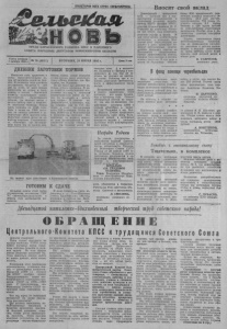 ОРГАН КАРАСУКСКОГО РАЙКОМА КПСС И РАЙОННОГО СОВЕТА НАРОДНЫХ ДЕПУТАТОВ НОВОСИБИРСКОЙ ОБЛАСТИ Вносят свой вклад Газета основана ѵ е /со ,, ч 2 октября 1930 г. 'V (6811) ВТОРНИК, 24 ИЮНЯ 1986 г. Цена 3 коп. Двенадцатый пятилетний план — крупный шаг в осу ществлении экономической и социальной политики, вырабо танной XXVII съездом КПСС, отметил в своем докладе М. С. Горбачев на июньском Плену ме ЦК КПСС. Нам воплощать решения съезда в жизнь. И для этого нужно хозяйствовать расчетливо и экономно. Кол лектив цеха эксплуатцции, ве дущего в депо, правильно по нимает поставленные задачи, активно принимал участие во Всесоюзном общественном смотре эффектиёности исполь зования теплоэнергии и матери альных ресурсов. В его ходе в целом по отделению внесено более 800 предложений, реа* лизация которых позволила сэ кономить 23,5 млн. квт-час. электроэнергии, 722 тонны ус ловного топлива, 2,5 тонны бензина и 426 тысяч рублей за использование старогодных материалов. Особая доля в до стигнутых успехах отводится деповчанам. Задачи, намеченные перед железнодорожным транспор. том на двенадцатую пятилет ку, реальные и вполне выпол нимые, и каждый деповчанин на своем рабочем месте будет вносить свой личный вклад в общее' дело. К. ГАВРИЛОВ, машинист депо. ДНЕВНИК ЗАГОТОВКИ КОРМОВ Июньское сено, ароматное и самое высокопитательное, ни. чем не заменить зимой на фер мах. И полеводы ряда хозяйств по-ударному трудятся в эти дни на лугах, не дают травам перестоять на корню и пере лежать в валках. Всяческой похвалы заслуживают кормо заготовители Калачинского совхоза, где зеленая жатва с самого начала идет в комплек се, высокими темпами. Травы здесь скошены на 1125, сгре бены в валки на 1066 гекта рах, на сеновал завезено и за. скирдовано 4521 центнер сена. Нарастает сенной поток на се новалы совхозов Студеновско- го, «Октябрь», где наскирдо- вано более чем по тысяче цен На снимке: идет сеноуборка в Калачинском совхозе. ГОТОВИМ Большие задачи стоят перед тружениками коллектива СМУ УС «Новосибирскводстрой» в первом году двенадцатой пя тилетки. тнеров корма, среди колхозов лучше других ведут кормозаго товку «Маяк Ильича», им. Ми. чурина, им. Жданова. Но не везде так дорожат по гожим летним временем. В ря де хозяйств необоснованно про должают медлить с широким 1 развертыванием работ на лу гах, не включают в работу всю технику. В совхозе им. Дзержинского, к примеру, тра вы скошены уже на 516 гек тарах, а сена наскирдовано всего 150 центнеров. Низка ра бота агрегатов в Хорошинском и Калиновском совхозах. По видимому, не волнует качест во сена руководителей и спе циалистов колхоза «Новая . се мья», где скошено всего 68 К СДАЧЕ В июне планируем сдать во допровод в с. Ново-Ивановка (совхоз Калачинский), объекты орошения в совхозе им. Дзер жинского, Студеновском сов гектаров трав. А в колхозах им. Калинина и «Вперед к ком мунизму» до сих пор не за везено на сеновал ни центне ра корма. Работать так в ус ловиях возросшей требователь ности к эффективности труда нельзя. Витаминной травяной муки и гранул выработано 1034 центнера, это вдвое больше, чем в прошлом году. Однако обольщаться ростом не следу ет, так, как по-прежнему без действуют агрегаты АВМ в совхозе «.Октябрь», в колхо зах им. Тельмана и им. Кар ла Маркса, Сенаж продолжает закладывать один лишь Кала чинский совхоз, а остальные почему-то медлят с началом заготовки эт