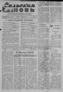 ПРОЛЕТАРИИ ВСЕХ СТРАН, СОЕДИНЯЙ! ОРГАН КАРАСУКСКОГО РАЙКОМА КПСС И РАЙОННОГО СОВЕТА НАРОДНЫХ ДЕПУТАТОВ НОВОСИБИРСКОЙ ОБЛАСТИ Дневник заготовки кормов ЗА ТРИ ПЕРВЫХ ДНЯ ОБЛАСТНОГО УДАРНОГО ДИ» КАДНИКА В КОЛХОЗАХ И СОВХОЗАХ ПОСТАВЛЕНО В СКИРДЫ 62640 ЦЕНТНЕРОВ СЕНА ПРИ ЗАДАНИИ 37 ТЫСЯЧ. Газета основана 2 октября 1930 г. С ЗАМЕЧАТЕЛЬНОЙ ПОБЕДОЙ! Директору Калачинского совхоза т. РОГОЗНОМУ Л. И. Секретарю парторганизации г. КРОММУ А. А. Председателю исполкома сельского Совета т. ГРИНЧЕНКО П. Г. Председателю профкома т. БРАУНАГЕЛЮ П. П. ВСЕМУ КОЛЛЕКТИВУ СОВХОЗА. Дорогие товарищи! РК КПСС, райисполком поздравляют вас, механизаторов, рабочих совхоза с досрочным выполнением плана заготовки сена в количе стве 51500 центнеров, причем, все сено соот ветствует стандарту первого класса. Трудовая победа стала возможной благодаря широко развернутому социалистическому со ревнованию за активное претворение в жизнь решений XXVII съезда партии, июньского (1986 г.) Пленума ЦК КПСС, задания удар ного декадника, объявленного обкомом пар тии и облисполкомом, повышенному чувству от ветственности каждого руководителя и меха низатора. РК КПСС и райисполком выражают уверен ность, что коллектив совхоза в предстоящую зимовку 1986 — 87 гг. заготовит не менее 75 тысяч ц сена, успешно выполнит планы на копления сенажа и ВТМ. РК КПСС РАЙИСПОЛКОМ Отмечено, что областной агропромышленный комитет, районные агропромышлен ные объединения не доби лись полного выполнения указаний Центрального Коми тета КПСС об особой важ ности обеспечения всех хо зяйств качественными кор мами. В области слабо реша ются вопросы интенсифика ции кормопроизводства. Не нашли широкого применения методы активного -вентилиро вания сена, заготовки сена в рулонах и сенажа с при менением консервантов и дру гие. Темпы сенокосной кампа нии этого года также не отве чают высоким требованиям времени. На 7 июля заготовлено 344.7 тыс. тонн сена (22,5%). 81,7 тыс. тонн сенажа (10,6%), вы работано 29,3 тыс. тонн вита минно-травяной муки (.21,0%). на 712 тыс. гектарах проведе на химическая прополка посе вов, 119 тыс. гектаров пше ницы обработано препаратом ТУР. В Куйбышевском, Барабин- Ском, Убинском, Чулымском, Каргатском, Северном райо нах скошено всего от 10 до 21 процента сеяных и естествен ных трав. Большое отстава ние при скирдовании сена допущено в Коченевском, Бо- Лотнинском, Мошковском, Кыштовском, Колыванском и некоторых других районах. Много крупных недостатков допущено в работе по выра щиванию зерновых по интен сивной технологии. В неко торых районах оказались не использованными' противоов- сюжные почвенные герби циды, явно запоздали ( с про ведением химпрополки хозяй ства Купинского, Чистоозер ного, Усть-Таркского, Вен геровского и Каргатского рай- № 84 (6819) СУББОТА, 12 ИЮЛЯ 1986 г. Цена 3 коп. Председателю колхоза «Новая семья» т. БАРАННИКОВУ А. С. Секретарю парторганизации т. ДЕНИСЕНКО А. Г. Председателю исполкома сельского Совета т. ПЕТРОВУ В. В. Председателю профкома т, ГРЕБУ В В. Секретарю комсомольской организации т. КУЛИКОВУ А. П. ВСЕМУ КОЛЛЕКТИВУ КОЛХОЗА. РК КПСС, исполком районного Со вета народных депутатов сердечно поздравля- <4 ют коллектив колхоза с большой трудовой по бедой — выполнением годового плана заго товки сена в количестве 29500 центнеров и закладки сенажа в количестве 16 тысяч цент неров. Достижению этого успеха способ