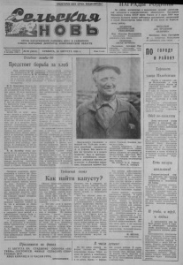 ПРОЛЕТАРИИ ВСЕХ СТРАН, СОЕДИНЯЙТЕСЬ! ОРГАН КАРАСУКСКОГО РАЙКОМА КПСС И РАЙОННОГО СОВЕТА НАРОДНЫХ ДЕПУТАТОВ НОВОСИБИРСКОЙ ОБЛАСТИ За успехи, достигнутые в выполнении заданий ідиннадца- той пятилетки и социалистических обязательств, Президиум Верховного Совета СССР своим Указом от 3 июля 1986 года наградил большую группу работников предприятий, организаций и служб Министерства связи СССР. В том числе по Карасук- скому району. Газета основана 2 октября 1930 г. Позывные жатвы-36 Предстоит борьба за хлеб Наш корреспондент попросил председателя колхоза им. Куйбышева Н. И. Денисенко и главного агронома Ка лачинского совхоза Я. Ф. Кулибера рассказать о предубо рочном положении дел в хозяйстве, как хлеборобы дума ют в сжатые 'сроки, без потерь убрать урожай, справить ся с главной своей заповедью — планом продажи зерна государству. Н. И. Денисенко: Начало ны нешней уборки урожая замет но отодвигается на более позд нее время. В этом заключает ся особенность и сложность страды, тем более, что хлеба удались хорошие и важно уб рать их вовремя и без потерь. У нас же есть все -возможнос ти выполнить план продажи зерна. Хлеборобы колхоза по ставили перед собой именно такую цель. Жатву-86, по всей види мости, начнем в середине тре тьей декады августа, к этому времени подоспеют зерновые культуры. И хотя будем рабо тать как . и в прошлые годы, единым комплексом, однако внесли в план проведения стра ды кое-какие коррективы. С первых же дней жатвы все зерноуборочные звенья вклю чатся в косовицу пшеницы и других культур. А когда, учи тывая погодные условия, уло жим в валки не менее 30 — 40 процентов всей площади зер новых, 8 комбайнов из 16 пе реоборудуются на обмолот вал ков. Я. Ф. Кулибер: Ритм жат вы-86 будут определять темпы косовицы и обмолота. А это в основном зависит от состояния техники. Надо сказать, что по леводы хозяйства тщательно подготовили комбайны и тран спорт к страде, отладили зер № 99 (6834) СУББОТА, 16 АВГУСТА 1986 г. Цена 3 коп. ноочистительную технику на токах. Ріадры комбайнеров по добраны. На каждом отделе нии. организованы уборочные звенья. Учитывая серьезную обста новку в сложившихся услови ях после затяжных дождей, мы ставим перед всеми участника ми страды задачу — высоко производительно используя аг регаты, в сжатые сроки завер шить уборку, конечно, нс за бывая о качестве. Сроки жест кие — за 15 — 16 суток закон чить уборку зерновых, за 12 дней — • косовицу силосных культур. А потому 15 «степ ных кораблей» готовы длд прямого комбайнирования . По предварительным подсче там, в среднем урожайность зерновых культур составит 13 — 15 центнеров с гектара. Отдельные хлебные массивы, возделанные по интенсивной технологии, дадут до 20 и бо лее центнеров. А потому хле боробы хозяйства, костяк ко торых составляют опытные ме ханизаторы, намерены не толь ко выполнить годовой план продажи зерна в количестве। 65 тысяч центнеров, но и пе ревыполнить, . так как государ ство заинтересовывает ’ хозяй ства в сверхплановой продаже зерна, тем более сильных и твердых сортов. Заслуженным уважением в колхозе им. Тельмана полязу- ется старейший механизатор А. А. Гофман. Без малого со рок лет трудится он в родном хозяйстве. Был и тракторис том, и комбййнером, неодно кратно добивался высоких ре зультатов в уборочйых кампа ниях. Награжден орденом Тру ОРДЕНОМ ОКТЯБРЬСКОЙ РЕВОЛЮЦИИ Мая Никол