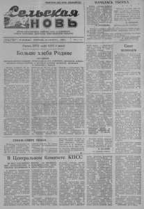 ПРОЛЕТАРИИ ВСЕХ СТРАН, СОЕДИНЯЙТЕСЬ! ОРГАН КАРАСУКСКОГО РАЙКОМА КПСС И РАЙОННОГО СОВЕТА НАРОДНЫХ ДЕПУТАТОВ НОВОСИБИРСКОЙ ОБЛАСТИ Газета основана 2 октября 1930 г. № 100(6833) ВТОРНИК, 19 АВГУСТА, 1986 г. НАЧАЛАСЬ УБОРКА Первые «степные корабли» вышли на поля Студеновско- го совхоза. Здесь в воскресенье началась уборка хлебов. Зве ном комбайнеров центрально го отделения во главе с опыт ным механизатором В. В. Фи- надеевым в первый день пше ница была уложена в валки на площади 40 га. Уборка в сов хозе набирает темпы и на дру гих отделениях. Н. ВАСИЛЬЕВА. * * * Началась косовица овса на зерно в совхозе «Октябрь». Тон в работе задают опытные механизаторы А. В. Туренко и Л. М. Пономарев. 160 га уло жили они в валки жатками ЖВР-10 за три дня. В. ВОЛЬВАЧ, директор совхоза «Октябрь». Цена 3 коп Рокотом комбайнов огласились поля колхоза ^«Новая семья», на которых зреет хороший урожай, обещающий дать по 23 25 ц зерна с гектара. Первые сотни гектаров овса уложили с хорошим качеством хлеборобы звена, возглавляемого Л. К. Будко. Сегодня намечается начать косовицу основной венной культуры — пшеницы. А. БАРАННИКОВ, председатель колхоза. Решения XXVII съезда КПСС-# жизнь! Больше хлеба Родине ОБРАЩЕНИЕ участников районного совещания механизаторов ко всем комбайнерам, трактористам, шоферам, работникам сельского хозяйства, к рабочим и служащим предприятий, организаций и учреждений г. Карасука Дорогие товарищи! На полях района золотятся спелые хлеба, а значит пришла глав-: ная работа года — уборка урожая. Уборка венчает труд земледельца, экзамен на его профессиональное -мастерство, трудолюбие, преданность делу. Нынешняя страда особая тем, что она стартовая в 12-й пяти летке. Труженики колхозов, совхо зов сделали все возможное, обеспечивая интенсивную тех нологию выращивания зерно вых и кормовых культур, на правленную на получение мак симально высоких урожаев. И нет более важной задачи, чем своевременно убрать выращен ное, не допустить потерь зер на и кормов. Дело чести тру жеников РАНО пронести убор ку за 14 — 18 рабочих дней, продать государству 500 тыс. ц зерна, в том числе 120 тыс. ц сильных и ценных сор тов, заготовить под урожай 1987 года высококлассные се мена, вспахать зябь, заготовить достаточное количество кормов. Собравшись на традиционное предуборочное совещание, мы, его ■ участники, заявляем о своей готовности активно включиться в проведение убо рочной кампании, приложить свой опыт и знания для дости жения поставленных задач. Как и в прошлые годы, мно гие механизаторы приняли по вышенные социалистические СЕНАЖ-СВЕРХ ПЛАНА Полеводы Калачинского сов хоза успешно справляются с поставленной задачей — обес печить, скоту сытную зимовку. На днях они выполнили зада ние по закладке сенажа. В В Центральном Комитете КПСС ЦК КПСС РАССМОТРЕЛ ВОПРОС «ОБ ОРГАНИЗА ЦИИ ПОЛИТИЧЕСКОГО И ЭКОНОМИЧЕСКОГО ОБРА ЗОВАНИЯ ТРУДЯЩИХСЯ В 1986/87 УЧЕБНОМ ГОДУ». В принятом постановлении отмечается, что поворот общества к новым задачам, вклю чение в их решение творческо го потенциала народа, каждо го трудового коллектива явля ется первейшим условием ускорения социально-эконо мического развития страны, совершенствования „ всех сто рон общественной жизни. В осуществлении этой страте гической установки XXVII съезда КПСС значительна роль политической и экономи ческой учебы. Задачи, выдвинутые XXVII съездом п