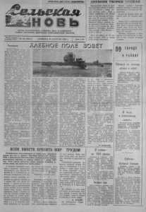ПРОЛЕТАРИИ ВСЕХ СТРАН, СОЕДИНЯЙТЕСЬ! ОРГАН КАРАСУКСКОГО РАЙКОМА КПСС И РАЙОННОГО СОВЕТА НАРОДНЫХ ДЕПУТАТОВ НОВОСИБИРСКОЙ ОБЛАСТИ ДНЕВНИК УБОРКИ УРОЖАЯ Газета основана 2 октября 1930 г. № 102 (6837)! Репортаж не- не хо- по го- Колхоз «Новая семья» сла вится в районе высокой куль турой земледелия. Слаженно, творчески работает здесь агро номическая служба. Предсе датель колхоза, член обкома и член бюро райкома гіартии А. С. Баранников держит ее работу под особым контролем. Земля не терпит снисходительного отношения к себе. Это кажд. и колхозник знает, и относится к ней при обработке с заботой и любовью, на что она отвечает урожаем. Даже в неблагоприят ные годы колхоз собирает плохой хлеб. Прошлый год составил исключения — зяйство выполнило план сдаче зерна государству. Заблаговременно начали товиться в колхозе к весне пер ваго года двенадцатой пяти летки. Со всей тщательностью была произведена подготовка техники, расстановка механи заторских кадров, созданы зве нья: три — для уборки зер новых, два — для уборки си-' лосных культур, по одному звену — на заготовке сена и вспашке зяби. Сев произвели в лучшие агротехнические сро ки. Прошло время. И вот мы с председателем ^колхоза объ езжаем поля. Хлебная нива ра дует взгляд. Морем волнуется пшеница на полях Большое Тархановское и Сазонове. Дав но такого хлеба мы не виде ли. Председатель радуется вместе с нами, он доволен ра ботой полеводов. Пшеница, пшеница, чистая, с ядреным колосом. В каждом -- до 60 зерен. — Не менее 30 центнеров даст гектар, — говорит он, і встревоженно смотрит на не бо, где снова громоздятся дож девые тучи. Мы., понимаем обеспокоен ность председателя — хлеб ной ниве сейчас нужно солн це, а оно в эти дни не часто радует полеводов. Сам собой заходит разговор о сдаче хлеба государству. Председатель ненадолго заду мывается, видимо считает: «Ес ВСЕМ ВМЕСТЕ КРЕПИТЬ МИР ТРУДОМ Руководствуясь ответственностью за судьбы мира, всесторонне взвесив все «за» и «против», Политбюро Центрального Комитета КПСС и правительство Советского Союза приняли решение продлить односторонний мораторий на ядерные взрывы до 1 января 1987 года. Новая мирная инициатива нашла широкую поддержку со ветских людей, всех тружеников нашего района.' С глубоким одобрением встре тили в трудовых коллективах локомотивного депо Карасук явление М. С. Горбачева по ветскому телевидению, и все ражают полную поддержку ратория на ядерные взрывы до 1 января 1987 года. Задача де- повчан — вносить в дело ук репления мира и свой посильный вклад, крепить трудом экономи ческую мощь страны.. Успешно завершены планы 7 месяцев, но есть еще резервы, которые нуж но поставить на службу произ водства; укрепление дисциплины, совершенствование организации труда и т. д. И коллектив депо полон решимости все эти резер- За- со- вы- мо- СУББОТА, 23 АВГУСТА 1986 г. Цена 3 коп. мда ли на круг возьмем с гектара по 23 — 25 центнеров зерна, то Родине отправим его около 40 тысяч центнеров», — ска зал он. А это значит — более полутора плана. Что ж. если провизорные цифры совпадут с действительными, старт кол хоза в двенадцатую пятилетку будет отличным. Удивила нас кукурузная плантация, что находится за бывшим селом Тархановка. . Вы сокие, хорошо олиствленные стебли кукурузы, подсолнеч ника намного выше человече ского роста. Густота такая, . что человек с трудом может по этой 