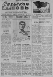 ПРОЛЕТАРИИ ВСЕХ СТРАН, СОЕДИНЯЙТЕСЬ! ОРГАН КАРАСУКСКОГО РАЙКОМА КПСС И РАЙОННОГО СОВЕТА НАРОДНЫХ ДЕПУТАТОВ НОВОСИБИРСКОЙ ОБЛАСТИ Газета основана 2 октября 1930 г. № 106 (6841) ВТОРНИК, 2 СЕНТЯБРЯ 1986 г. Цена 3 коп ВЫШЕ ТЕМПЫ НА ОБМОЛОТЕ ХЛЕБОВ! ФЛАГ ТРУДОВОЙ СЛАВЫ поднят в честь комбайнеров кол хоза им. Мичурина В. В. СЫЧЕНКО, С. САЛЬНИКА, В. АКУ ЛОВА. Передовые хлеборобы хозяйства намолотили по 2700 центнеров зерна. Хлеб — Родине На утро 31 августа хозяйст- | вами района отправлено на | элеватор 8350 центнеров пше-1 ницы. Причем, вся сдана вы-। сококачественной репродукции | — 265 центнеров сильной и ■ 8085 центнеров ценной сортов. В продаже хлеба государст ву принимают участие труже ники Калачинского совхоза, колхозов «Новая семья», им. Ленина, им. Мичурина. ДНЕВНИК УБОРКИ УРОЖАЯ Погода продолжает оставать ся неустойчивой, что заставля ет земледельцев быть вдвойне, втройне собранными, в любую погожую минуту выводить ком байны на уборку хлебов. Цент-| ральное внимание — обмоло ту зерновых. Ведь из 32303 гектаров скошенных хлебов их обмолочено всего 6654 га. В прошлом году на эту же да ту было соотвётственно около 51 тысячи и почти 11 тысяч. Лучший маневр техникой используют по-прежнему ком байнеры колхоза им. Мичури на, где из 1889 га скошенных хлебов 968 га обмолочены. Упорно, вопреки непогоде, ве дут борьбу за хлеб полеводы колхозов «Новая семья», им. Ленина, им. Карла Маркса, где валки подобраны на пло щади от 725 га до 333, а также Калачинского, Хорошин- ского, совхоза «Октябрь» — от 1093 до 622 га. Кстати, в воскресенье хорошане сумели обмолотить 312 га, больше всех. Набирает темпы косовица силосных культур. Их скошено 4810 га против 11701 га в соответствующий период 1985 г. Жатве-86 — боевое соцсо ревнование за качественную и своевременную уборку хлебов и пропашных культур. Есть план по сенажу Полеводы района, активно участвуя в заготовке качест венных кормов для обществен ного стада на предстоящую, зи мовку, выполнили годовой план по закладке сенажа в количе стве 236 тысяч центнеров. На копление питательного корма продолжается. • Наибольший вклад внесли труженики колхозов им. Тель мана, «Новая семья», совхозов Студеновского и «Октябрь», где задания перевыполнены в два раза. Нужно отметить, что в не которых хозяйствах к заклад ке сенажа еще не приступали. Не ведется его заготовка в Ка линовском совхозе, колхозах им. Карла Маркса, им, Мичу рина, им. Калинина, им. Куй бышева. Хлеборобы шуіхоза «Новая семья» стремятся успешно сьравніѣся с годовым * планом продажи зерна государству. Процесс уборки и вывоз зерна организованы четко. Один из лучших водителей хозяйства В. Г. Гладков на своем ЗИЛе перевозит на элеватор по 500 — 600 центнеров вы сококачественного зерна урожая 1986 года. На снимке: В. Г. Гладков. И зерновые, В Студеновском совхозе зер новые скошены на площади 3617 гектаров, в том числе пшеница — на 2991 гектаре. А обмолот пшеницы проведен только на 74 гектарах. Меха низаторы ведут,и косовицу «ко ролевы полей». 9185 центне ров зеленой массы заготовле но в хозяйстве. Хороших показателей доби вается на свале звено В. В. Финадеева в составе С. В. Фи- надеева, А. В. Финадеева, Л. Козлова. На комбайнах СКД-6 они вдвое перевыполня ют дневную норму. * * * Набирает темпы уборочная страда в колхозе «Маяк Иль ича». 2536 гектаров зерновых уложено в хозяйстве в валки, в том числе 2036 гектаров В ДЕНЬ ЗНАНИЙ Первосент
