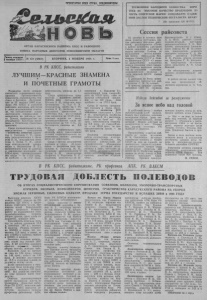 ПРОЛЕТАРИИ ВСЕХ СТР АН, СОЕДИН ЯЙТЕС Ь! ОРГАН КАРАСУКСКОГО РАЙКОМА КПСС И РАЙОННОГО СОВЕТА НАРОДНЫХ ДЕПУТАТОВ НОВОСИБИРСКОЙ ОБЛАСТИ Газета основана 2 октября 1930 г. № 132 (6867) ВТОРНИК, 4 НОЯБРЯ 1986 г. Цена 3 коп. В РК КПСС, райисполкоме ЛУЧШИМ — КРАСНЫЕ ЗНАМЕНА И ПОЧЕТНЫЕ ГРАМОТЫ ТРУЖЕНИКИ НАРОДНОГО ХОЗЯЙСТВА! БОРИ ТЕСЬ ЗА ВЫСОКОЕ КАЧЕСТВО ПРОДУКЦИИ ЗА ЧЕСТЬ СОВЕТСКОЙ МАРКИ! СОЗДАВАЙТЕ НАДЕЖ НЫИ ЗАСЛОН ТЕХНИЧЕСКОЙ ОТСТАЛОСТИ. БРАКУ * (Из призывов ЦК К'(СС). Сессия райсовета 31 октября в актовом зале Дома Советов состоялась сес сия райсовета народных депу татов, рассмотревшая «Отчет о работе исполкома районного Совета народных депутатов и задачи местных Советов по выполнению постановления ЦК КПСС, Президиума Вер ховного Совета СССР и Сове та Министров СССР «О мерах по дальнейшему повышению роли и усилению ответственно сти Советов народных депута тов за ускорение социально- экономического развития в свете решений XXVII съезда КПСС». С докладом по йтому вопро су выступил председатель рай исполкома С. В. Кульневич. В прениях приняли участие: начальник СМУ УС «Новоси. бирскводстрой» Б. Г. Швец, Л. А. Фоос, рабочая совхоза плодово-ягодный, рабе тница райпищекомбината Т. Н. Вер- тунова, механизатор Калинов ского совхоза Ю. М Кс лесни ков, председатель комитета народного контроля Г. П. Ка- датко, штукатур І ’ ОРЕМа Л. П. Разина, доярка колхоза им. Мичурина Г. В. Мэхмето- ва, председатель Июайлов- ского сельсовета А. Ф. Стол- бинский. По обсужденному вопросу принято соответствующее ре шение. В работе сессии принял уча стие зам. председателя областного агропрома А. Н. Чау, сов. Подведены итоги социали стического соревнования пред приятий промышленности, транспорта, строительства, тор говли и бытового обслужива ния за ІП квартал 1986 года. Бюро РК КПСС и исполком райсовета народных депутатов в своем постановлении отмети ли, что победителями социа листического соревног ания с занесением на районную дос ку Почета, награждением пе реходящими Красн ыми знаме нами и Почетными грамотами признаны: Среди промышленных и про изводственных предприятий — коллектив элеватора (дирек тор т. Сметанин Г. С., секре тарь парторганизации т. Боча рова Е. М„ председатель проф кома т. Вельц Т. И., секре тарь комсомольской органи зации т. Индимирова Л. Л.), выполнивший план по выпуску и реализации продукции на 104,4 проц., производительно сти труда — на 104,6 проц., по прибыли ■ — на 154,7 проц.. себестоимость снижена на 1,1 проц. Среди транспортных пред приятий — коллектив локомо тивного депо (начальник т. Шачнев В. И., секретарь парт, организации т. Тур П. 3., председатель профкома т. Ро- дюшкин Н. Е., секретарь ком сомольской организации т. Субботина Н.), выполнивший план перевозок на 104,5 проц., плановое задание по росту производительности труда пе ревыполнено на 0,6 щец., се бестоимость снижена на 3,5 проц. Среди строительных орга низаций, ввиду невыполнения условий социалистического со. ревнования, решено классные места не присуждать. Среди I группы предприятий торговли и сферы обслужи вания — коллектив орса (на чальник т. Садыкова М. Е., секретарь парторганизации т. Штода А. В., председатель .профкома т. Коротаева В. С., секретарь комсомольской ор ганизации т. Садыкова С.), выполнивший план товарообо рота на 106,9 проц., план по выпуску собственной продук ции — на 100 проц., план прибыли — на 176,2 проц. Среди II гр