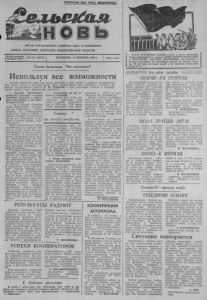 ПРОЛЕТАРИИ ВСЕХ СТРАН, СОЕДИНЯЙТЕСЬ! ОРГАН КАРАСУКСКОГО РАЙКОМА КПСС И РАЙОННОГО СОВЕТА НАРОДНЫХ ДЕПУТАТОВ НОВОСИБИРСКОЙ ОБЛАСТИ Газета основана 2 октября 1930 г № 137 (6872) ВТОРНИК, 17 НОЯБРЯ 1986 г. Цена 3 коп. Газета выступила. Что изменилось? I ФЛАГ ТРУДОВОЙ СЛАВЫ поднят в честь передовых | $ доярок Калачинского совхоза ЛЕМП ОЛЬГИ ИВАНОВНЫ »> | и МИХЕИЛИС АМАЛИИ ИВАНОВНЫ, получивших с | I начала года более 28 центнеров молока от каждой коро- I вы. В эти дни суточные надои в их группах составляют | | более 6 кг. Используя все возможности Долгая сибирская зима еще только вступает в свои права, а сельские механизаторы уже живут думами о будущей весне. Наш корреспондент взял интервью у главного ин женера Студеновского совхоза В. М. Гарнагина о ходе подготовки техники к полевому сезону второго года двенадцатой пятилетки. ... Как идет зимовка . ' — = СОЛОМУ-НА ГРАНУЛЫ — Василий Михайлович, ремонтная кампания в вашем хозяйстве началась с некото рым запозданием, а как обсто ят дела сейчас? — Да, в октябре «Сельская новь» критиковала студенов- цев за отставание в отладке техники, за затянувшуюся подготовку РТМ к работе в зимних условиях. В настоящее время все недостатки устра нены, и ремонт набрал хоро шие темпы. Наши механизаторы сполна использовали на редкость теп лую и сухую осень для вос становления машин на откры том воздухе. В результате за. время, прошедшее после убор ки, отремонтировано 23 зер новых комбайна, еще 8 сделан техуход, затем всё эти «степ ные корабли» поставили на зимнее хранение. В течение октября отремон тировали 8 тракторов, еще столько же машин разных ма рок стоят в мастерской. Так что квартальный план, по которому предстоит восстановить 18 тягачей, будет выполнен. В специальном боксе при РТМ идет отладка зерновых сея лок, ведут ее механизаторы С. М. Ильин и И. К. Марты нец. К концу декабря планируется восстановить здесь все посевные агрегаты первого и второго отделений. Вслед за сеялками в боксе начнется реставрация сенных комбай нов, к весне все 6 машин бу- , дут поставлены на линейку го товности. На всех отделениях идет ремонт зубовых борон, сцепок. РЕЗУЛЬТАТЫ РАДУЮТ Большое внимание в своей работе коллектив резерва про водников уделяет не только выполнению принятых социа листических обязательств, но и культуре обслуживания пас сажиров. Всем этим требова ниям удовлетворяют бригады, возглавляемые В. Я. Дерги левым, П. Е. Коваленко, Н. К. Могильным. Досрочно, к 7 но ября они выполнили и свои годовые обязательства. Брига ды трудятся с внедрением не УСПЕХИ КООПЕРАТОРОВ стабильно трудится в пер вом году двенадцатой пятилет ки коллектив райпо. По итогам работы в I и II кварталах он . награжден Почетной грамо той Центросоюза, Роспотреб- союза и ЦК профсоюза отрас ли. Роль передового коллектив райпо подтвердил и в III квар тале, по итогам которого ему присуждено Красное знамя К сведению населения В связи с ледоставом снят понтонный мост через р. Ка расук на автодороге республиканского значения. Проезд в г. Но восибирск открыт через села Шилово-Курья — Амангельды Морозовка. — Пользуетесь ли вы ус лугами ремзавод#? — Конечно. Дело в том, что совхозная ремонтная база слаба, в тесной, построенной еще в 1953 году РТМ невоз можно выполнить весь объем Технику- * на линейку готовности восстановительных работ. По этому 6 зерновых комбайнов, требующих наиболее слож