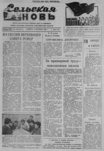 ПРОЛЕТАРИИ ВСЕХ СТРАН, СОЕДИНЯЙТЕСЬ! ОРГАН КАРАСУКСКОГО РАЙКОМА КПСС И РАЙОННОГО СОВЕТА НАРОДНЫХ ДЕПУТАТОВ НОВОСИБИРСКОЙ ОБЛАСТИ ФЛАГ ТРУДОВОЙ СЛАВЫ поднят в честь передово доярки Калачинского совхоза ЛЕМП ОЛЬГИ ИВАНОГ НЫ, получившей с начала года по 30 центнеров молок; рт каждой коровы своей группы. Газета основана 3 октября 1930 г. № 146 (6881) СУББОТА, 6 ДЕКАБРЯ 1986 г. Цена 3 коп. НА СЕССИИ ВЕРХОВНОГО К 70-летию Великою Октября СОВЕТА РСФСР МОСКВА. (ТАСС). 3 декаб. ря в Большом Кремлевском Дворце второй день работала сессия Верховного Совета РСФСР. Депутаты завершили начатое накануне обсуждение вопросов о Государственном плане экономического и соци ального развития и Государст венном бюджете республики' на 1987 год. Ораторы, предлагая утвер дить план и бюджет, отмеча ли, что характерная их осо бенность состоит в ориентации на новые условия хозяйствова. ния. Основой глубокой пере стройки народного хозяйства является научно-технический прогресс. Особое значение приобретает человеческий фак тор. Много, внимания депутаты уделили эффективному исполь зованию основных фондов. Необходимо принять меры, подчеркивали выступавшие, для перевода всего высоко производительного оборудова. ния на двух- трехсменный ре жим работы. По мнению депутатов, дале ко не полностью используют ся резервы в агропромышлен ном комплексе. Наиболее ела. бым звеном здесь остается хранение и переработка сель скохозяйственной продукции. На сессий затрагивались также проблемы, связанные с укреп лением финансового положе ния колхозов и совхозов, внед рением интенсивных техноло гий. прогрессивных форм опла ты труда. Ораторы глубоко анализи ровали вопросы социального развития, повышения народ ного благосостояния. Была вы сказана озабоченность не удовлетворительным ходом строительства объектов соци ально-культурного назначения. Отмечалось также, что в тор говле все еще остро ощущает ся недостаток многих товаров народного потребления. Меж ду тем отдельные министер ства и ведомства, исполкомы местных Советов не привели в Краснодарский кран. Комсомольская организация колхоза Имени М. И. Калинина, насчитывающая почти 300 членов, яв ляется одной из самых боевых и инициативных в Красноармей ском районе. На счету у нее много интересных и славных дел. Юноши и девушки внесли большой вклад в выполнение колхо зом социалистических обязательств первого года двенадцатой пятилетки. На снимке: члены комитета комсомола колхоза (слева на- право) А. Нимченко, В. Дубинец, Ю. Запольский, И. Симонов. О. Яровая, В. Карпенко. О. Макарец. фото В. Веленгурина (Фотохроника ТАСС). действие резервы увеличе ния выпуска таких товаров. Депутатам было доложено, что постоянные комиссии Вер ховного Совета РСФСР на шли возможность увеличить доходы бюджета на 73 милли она рублей. Эти средства пред лагается направить на допол нительное финансирование капитального ремонта зданий детских больниц, поликлиник, родильных -домов, ДОМОВ-ИН- : тернатов для престарелых, ин валидов и детей, на приобре тение оборудования и инвен таря для учреждений . просве. щения, здравоохранения, со циального обеспечения, на организацию спортивно-мас-, совой работы в сельских райо нах республики. Депутаты единогласно при. няли законы о Государствен ном плане экономического и социального развития РСФСР на 1987 год и о Государствен ном бю