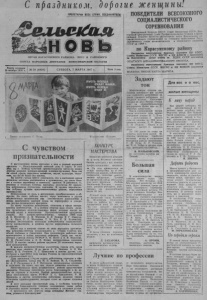С праздником, дорогие женщины! ПРОЛЕТАРИИ ВСЕХ СТРАН, СОЕДИНЯЙТЕСЬ! ОРГАН КАРАСУКСКОГО РАЙКОМА КПСС И РАЙОННОГО СОВЕТА НАРОДНЫХ ДЕПУТАТОВ НОВОСИБИРСКОЙ ОБЛАСТИ Газета основана 9 октября 1930 г. ПОБЕДИТЕЛИ ВСЕСОЮЗНОГО СОЦИАЛИСТИЧЕСКОГО СОРЕВНОВАНИЯ Центральный Комитет КПСС, Совет Министров СССР, Все союзный" Цент ральный Совет Профессиональных Союзов и Цент ральный Комитет ВЛКСМ- рассмотрели итоги Всесоюзного со циалистического соревнований за успешное выполнение Госу дарственного плана экономического и социального развития СССР на 1986 г. по Карасукскому району Награжден переходящим Красным знаменем ЦК КПСС, Совета Министров СССР, ВЦСПС н ЦК ВЛКСМ с занесением на Всесоюзную Доску почета на ВДНХ СССР коллектив ОПЫТНОГО МЕХАНИЗИРОВАННОГО ЛЕСХОЗА. Награжден переходящим Красным знаменем ЦК КПСС, Совета Министров СССР, ВЦСПС и ЦК ВЛКСМ коллектив КОЛХОЗА ИМЕНИ КАРЛА МАРКСА. № 29 (6920) СУББОТА, 7 МАРТА 1987 г. Цена 3 коп. С чувством признательности С наступлением весны приходит к нам и первый весенний праздник — Международный женский день 8 марта. В этот День мы с особым чувством признательности чествуем наших Дорогих женщин, женщин-матерей, женщин-тружениц. Ведь нет Ни одной сферы народного хозяйства, науки, культуры, искус ства, где бы не были они заняты. На XXVII съезде КПСС отмечалось, что в настоящее время женщины активнее выдвигаются к руководству, их стало боль ше в составе партийных и советских органов. В районном, го. родском и сельских Советах народных депутатов 50 процен тов избранников составляют женщины, В органы народовлас тия избраны лучшие представительницы района, передовики производства. Немаловажна их роль в проходящих преобразованиях в об ществе. На своих рабочих местах, через женсоветы и другие общественные организации они способствуют воплощению в жизнь намеченного партией курса на перестройку и ускоре ние научно-технического прогресса. По праву гордимся женщинами, занятыми в сфере матери ального производства. И в первую очередь надо отдать долж ное труженицам молочно-товарных ферм, которые вносят за метный вклад в выполнение Продовольственной программы страны. Это доярки-трехтысячницы, чемпион 1986 года А. И. Михейлис, Л. Ф. Мареева, Н. Я. Попова, В. Г. Ивануха, Л. А. Яцун, Р. Е. Молькина, Т. И. Бут, Е. Я. Бухмиллер, которые неоднократно выходили победителями социалистиче ского соревнования, и десятки других передовиков сельского хозяйства. Много сил и энергии отдают на ниве народного просвеще ния женщины-учителя, пользующиеся в Стране Советов все общей любовью и уважением. Они плодотворно работают над претворением в жизнь школьной реформы. Среди них заслу женные учителя школы РСФСР Е. Ф. Шуст и А. В. Перунова, М. Н. Рахматулина и Л. В. Новак, награжденные орденами СССР, В школах нашего района трудится 23 отличника народ ного просвещения. В каждом производственном коллективе города есть среди женщин свои «маяки». В их числе А. И. Чащина, А. П. Фо менко, В. Е. Рожкова, Е. Г. Шимолина и многие другие, удо стоенные в минувшем году наград Родины за самоотверженный И добросовестный труд. Дань признания следует отдать работникам торговли и сфе ры обслуживания. Среди них М. И. Вайман, М. А. Стадничен- ко. А. Г. Рахманько и А. Г. Нестерова, награжденные орденами и медалями. На таких, как они, держат равнение остальные. Многочисленную часть медпер