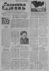 ПРОЛЕТАРИИ ВСЕХ СТРАН, СОЕДИНЯЙТЕСЬ! ОРГАН КАРАСУКСКОГО РАЙКОМА КПСС И РАЙОННОГО СОВЕТА НАРОДНЫХ ДЕПУТАТОВ НОВОСИБИРСКОЙ ОБЛАСТИ Газета основана 2 октября 1930 г. № 37 (6928) ЧЕТВЕРГ, 26 МАРТА 1987 г. Цена 3 коп. Навстречу юбилею Закупая излишки Коллектив районного заго- товительно . производственно, го объединения (бывшая за- ■ готконтора) поставил нынче задачу значительно улучшить свою работу, досрочно спра виться- с годовой производст венной программой, загото вить сверх задания не менее чем на 30 тысяч рублей сель скохозяйственной продукции и сырья. Реализация намеченного идет успешно. Квартальный план по общему обороту вы- , полнен почти на две недели раньше срока Еще в первой половине марта коллектив объединения справился с квартальным заданием по за купкам у населения мяса и шерсти, их' заготовлено соот ветственно 90 тонн и 9 цент неров в чистом волокне. Эти результаты лучше прошлогод них. Успешно идет сбор втор сырья. Особенно хорошо тру дятся, заготовители Ю. Г. При маков из Карасука, А. Н. Три фонов из Студеного, при емщик сырья Е. А. Иовенко. Б. КАИГОРОДОВ, директор объединения. Перевозкам- четкий ритм Большие задачи стоят перед железнодорожниками во вто- ?ом году пятилетки — году О — : летия Великого Октяб ря. Ответственностью за их выполнение должны проник-, нуться все труженики Кара- сукского отделения дороги. Как . же складывается выпол нение первого квартала?- Достигнутые результаты го ворят о том, что план его бу дет выполнен. Так, за прошед шие 2 месяца и 20 дней ус пешно выполняется в целом задание по перевозкам гру зов. А по таким как лес, ско ропортящиеся продукты, ком бикорма, соль имеется даже перевыполнение. Пока еще отстают такие показатели, как транспортировка зерна и про дуктов помола и на 0,3 тонны статнагрузка на вагон. Долг железнодорожников от деления с честью выполнить план квартала по всем измери телям. Н. КОЖУш КО. ст. инженер по планиро ванию отделения дороги. ВЕРНЫ ТРАДИЦИЯМ ВЕЛИКОГО ПОЧИНА Предприятия столицы начали подготовку к субботнику, 12 апреля 1919 года железнодорожники депо Москва-Сорти- ровочная остались после рабочей смены в цехах и безвозмездно отремонтировали три паровоза. Так зародилось движение, которое стало неотъемлемой частью истории нашей страны, движение, в котором В. И. Ленин увидел ростки «фактического начала комму низма». Зстафоту почина перенимали все новые и новые поколения советских людей. 17 марта в трудовых коллективах столицы сос тоялись митинги, на которых прозвучало предложение провести 18 апреля коммунистический субботник, посвященный 117-й годовщи не со дня рождения В. И, Ленина. Трудящиеся обратились с призы вом работать в этот день с наивысшей производительностью труда, в основном на сбереженных материальных и энергетических ресур сах. (ТАСС). В этот период, когда идет подготовка техники к весенне- полевым работам, заметно при бавилось забот у мастера-на ладчика РТМ колхоза им. Жда нова А, Ф. Миллера. Главное своевременно и качественно про вести технический уход., С этой обязанностью Александр Филип пович успешно справляется. Технику А. Ф. Миллер знает досконально, потому что более 30 лет проработал трактористом. На снимке: А. Ф. Миллер Фото А, Бондаря, Позывные веет . ДЛЯ УРОЖАЯ «КОРОЛЕВЫ» Кукурузный силос, как из вестно, занимает важное место в рационе кормления общест венного животноводс