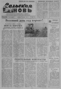 ПРОЛЕТАРИИ ВСЕХ СТРАН, СОЕДИНЯЙТЕСЬ! ДНЕВНИК ПОЛЕВЫХ РАБОТ ОРГАН КАРАСУКСКОГО РАЙКОМА КПСС И РАЙОННОГО СОВЕТА НАРОДНЫХ ДЕПУТАТОВ НОВОСИБИРСКОЙ ОБЛАСТИ Газета основана 2 октября 1930 г. № 59 (6950) 9 СУББОТА, 16 МАЯ 1987 г. Цена 3 коп. 13 и 14 мая над районом вновь прогремели грозы, про шли дожди. В четверг особен, но сильным он был в Кали- новке, где выпало 37,9 милли метра осадков, в Шилово-Ку- рье — 35,5 (это почти две ме сячные нормы), более чем по 20 мм — в Озерянке, Алек сандровке, Кучугуре. Аниси мовне. Работа на полях вновь приостановилась. По оперативным данным, к 15 мая закрытие влаги в рай оне проведено на 132 тысячах гектаров сельхозугодий — это без малого 90 процентов всех площадей. Полностью закон чили боронование совхозы им. Дзержинского, Калачинский и плодово-ягодный, колхозы им. Тельмана, им. Карла Маркса, им. Калинина. Половина хо зяйств приступила к яровому севу — однолетние и много летние травы размещены поч ти на 1300 гектарах, здесь впереди идут рктябрьцы. ми- хайловцы, чернокурьинцы. На 3450 гектарах произведен подъем пара. Хорошо рабо тают на выполнении этого аг роприема земледельцы Кала чинского, Хорошинского и Калиновского совхозов, колхо за им. Ленина. Считанные дни остаются до начала массового сева зерно вых и силосных культур. За дача полеводов — выполнить до его прихода максимум дру гих работ, что даст возмож ность провести весенний агро комплекс в оптимальные сро ки. Весенний день год кормит! Коллективный подряд в действии ЗВЕНО НА ХОЗРАСЧЕТЕ РАССЧИТЫВАЕТ ПОЛУЧИТЬ ПРОДУКЦИИ ИА КАЖДОГО РАБОТНИКА НА СУММУ 58 ТЫСЯЧ РУБ ЛЕЙ На коллективный подряд растениеводческая отрасль нашей фермы переведена уже несколько лет назад. Внедре ние его позволило заметно поднять продуктивность гек тара пашни. В прошлом году, к примеру, значительно пере выполнили план заготовки кормов. а урожай пшеницы сказался самым высоким в хозяйстве — по 18 центнеров добротного зерна намолотили на круг. Однако и такие результаты сегодня уже не могут удовлет ворить. Необходимо лучше, эффективнее использовать зем лю, технику, получать боль ше продукции при .наимень ших затратах. Помочь решить эту задачу призван хозрасчет, который нынче впервые опро буется на наших полях. Вся пашня фермы, занима ющая 2035 гектаров, закреп лена за хозрасчетным звеном из семи человек — это поло вина всех механизаторов фер мы. Состав звена определяли долго, неторопливо, включив в него самых лучших. Вместе с многоопытными Ф. И. Новико вым, избранным звеньевым, й Д. С. Тараном в него вошли молодые, но уже испытанные земледельцы, братья Николай и Сергей Таран,. Н. Меньши ков, В. Марков и О. Байту- лов. На закрепленных площа Колхозы «Вперед к комму низму» и им. Тельмана. Оба хозяйства не сумели добиться выполнения плана первого квартала продажи молока го сударству. Причин можно на звать несколько: и передви нувшийся растел, заболевае мость и выбытие из стада вы сокоудойных коров, плохое качество кормов. Конечно, это ни в коей мере не оправ дывает ни руководителей, ни зооветспециалистов, ни живот новодов. Например, в колхозе «Впе ред к коммунизму» план пер вого квартала прошлого года также не был выполнен. Нуж но отметить, что в данном хо зяйстве из года в год улуч шаются условия работы жи вотноводов, создаются и бы товые условия. Но в беседе с зооспециалистами выяснилось, что все-таки вопрос нехватки кадров