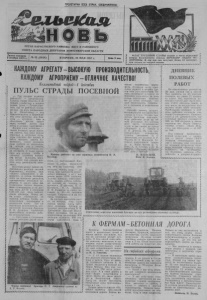 и 11 II И 11 11 ПРОЛЕТАРИИ ВСЕХ СТРАН, СОЕДИНЯЙТЕСЬ! Л № 63 (6954) ВТОРНИК, 26 МАЯ 1987 г. Цена 3 коп. Газета основана 2 октября 1930 г. ОРГАН КАРАСУКСКОГО РАЙКОМА КПСС И РАЙОННОГО СОВЕТА НАРОДНЫХ ДЕПУТАТОВ НОВОСИБИРСКОЙ ОБЛАСТИ КАЖДОМУ АГРЕГАТУ-ВЫСОКУЮ ПРОИЗВОДИТЕЛЬНОСТЬ, КАЖДОМУ АГРОПРИЕМУ-ОТЛИЧНОЕ КАЧЕСТВО! ФЛАГ ТРУДОВОЙ СЛАВЫ поднят в честь передовой доярки Калачинского совхоза ШРЕЙДЕР ЛИДИИ ФЕ ДОРОВНЫ. В эти дни она получает более 13 килограм мов молока от каждой коровы. п ■ 11 ДНЕВНИІ ПОЛЕВЫХ п 11 ПУЛЬС СТРАДЫ ПОСЕВНОЙ — Где сегодня агрегаты работают? — председатель колхоза «Маяк Ильича» Е. Я. Бендер улыбнулся и широко развел руки. — - Лучше спро- • сите, где не работают. Сегод ня они во всех направлени ях от Михайловки — под Красносельском и Карачйли- ком сеют пшеницу, под Кав- куем — кукурузу, еще в нескольких местах пашут пары, готовят землю под посев и посадку картофеля... Яровой клин хозяйства — самый большой среди колхо зов района, под одни только зерновые и силосные куль туры отведено без малого 6 тысяч гектаров пашни. Ес тественно, такое огромное поле требует от земледель ца немало сил и умения, особенно 'в скоротечную по ру посевной. И люди прила гают все усилия, чтобы в ■сложных условиях нынеш ней весны заложить проч ную основу под урожай вто рого года двенадцатой пяти летки. Попетляв между пышно зе ленеющими молодой листвой березовыми ч колками, наш «уазик» остановился 'у об ширного, в сотню гектаров, поля, по которому двигалось одновременно несколько аг регатов. С одного края два , гусеничных тягача заканчи вали культивацию, а на дру гом пара ДТ-75 с сеялками СЗП-3,6 уже вела заделку семян пшеницы. Перед ни ми катил «Беларусь» со сцепкой зубовых борон, до полнительно выравнивая и размельчая почву. Тут же находился руководитель хоз расчетной зерновой бригады В. И. Дурицын, тщательно проверявший качество рабо ты механизаторов. — - Прессовые и стерневые сеялки работают двумя труп- • трав, а * и іі 11 и I I іі іі іі Члены кормовой бригады Н. Г. Аверченко (слева) и А. Р. Фадеев. Коллективный подряд ~ в действии Хорошо работает на севе зерновых механизатор Н. Я. Тихонов. па ми, — рассказывает бри гадир, — вчера закончили сев овса на плановых 500 гектарах, теперь Цель — до конца мая завершить разме щение пшеницы, а ее у'нас нынче почти 4200 гектаров. Хорошо понимая ответствен ность задачи, ребята работа ют здорово, нс считаясь со временем. К примеру, И. Г. Шемяков, И. А. Барило, И. К. Гарнагин за смену за севают до 40 — 60 гектаров каждый. Стараются и не от стать остальные. За крутым поворотом шос се, на взгорке, группа машин. Здесь рабо тала кормовая подряде, возглавляемая В. М. Дроздовым. Василий Макси мович рассказал, что за его коллективом закреплено 900 гектаров силосных, 400 гек таров однолетних еще одна бригада на и в. Колено. р '■а л» «» Жг я« «в яс К Сеятельные агрегаты кормовой бригады во-дут размещение силосных культур. К ФЕРМАМ-БЕТОННАЯ ДОРОГА Вопросы благоустройства дорог и подъездных путей в нашем районе актуальны, так как их состояние желает луч шего. О том, какой план рабо ты намечено выполнить в ны. нешнем сезоне хозрасчетному дорожно-строительному участ ку, наш корреспондент попро сил рассказать его начальни ка Н. А. Ушакова, — С 15 апреля 1 полностью вся дорожно-строительная тех ника в работе. Одно из звень ев, руководит которым Е. И. Куцев, трудится в колхозе им. 