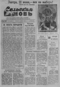 Завтра, 21 июня, — все на выборы! ПРОЛЕТАРИИ ВСЕХ СТРАН, СОЕДИНЯЙТЕСЬ! ОРГАН КАРАСУКСКОГО РАЙКОМА КПСС И РАЙОННОГО СОВЕТА НАРОДНЫХ ДЕПУТАТОВ НОВОСИБИРСКОЙ ОБЛАСТИ Газета основана 3 октября 1930 г. № 74 (6965) СУББОТА, 20 ИЮНЯ 1987 г. Цена 3 коп. ЗА ВЛАСТЬ НАРОДНУЮ Выездное бюро РК КПСС Завтра, в воскресенье, в районе, как и по всей нашей великой Родине, состоятся выборы в местные Советы народных депутатов и народных судей в районные народ ные суды. Ровно в шесть часов утра гостеприимно рас пахнут свои двери избирательные участки, польются ве личественные звуки Гимна Советского Союза, и первые избиратели опустят бюллетни в избирательные урны. Ровно в 10 часов вечера закроются избирательные уча стки. В знаменательное время проходят нынче выборы. Это время революционных преобразований, активной реали зации решений XXVII съезда КПСС, перестройки во всех сферах экономики, переоценки нравственных ценностей, демократизации нашей многообразной жизни. Велика в этом роль местных Советов, которым по закону при надлежит вся полнота власти. В условиях заметной общественной активизации, по вышения роли трудовых коллективов проходило нынче выдвижение кандидатов, обсуждение их деловых, мораль ных качеств, умение постоять за общественные интересы, проявить инициативу и настойчиво ее осуществлять. Ха рактерной особенностью при выдвижении народных пред ставителей было обсуждение нескольких кандидатур на один округ и выбор одной, наиболее авторитетной, под держанной трудовым коллективом через голосование. Как известно, нынче каждый избиратель будет голо совать за четырех кандидатов: в областной Совет, район ный. городской (в городе) или сельский (на селе) и за народного судью в районный суд. По нашему району в об ластной Совет баллотируются (соответственно каждый на своем округе): председатель колхоза им. Куйбышева Н. И. Денисенко, доярка колхоза им. Тельмана Т. П. ПІаленая, агроном Хорошинского совхоза В. П. Олифиренко, дояр ка Калачинского совхоза С. Я. Баль, председатель райис полкома С. В. Кульневич, председатель обкома профсою за работников агропромышленного комплекса В. В. Ба баков и машинист локомотивного депо Ю. Д. Переверза. В районный Совет будет избрано 100 депутатов, в го родской — 85 и в сельские Советы — 282 человека. Многие кандидаты в депутаты нынче еще до офици альных встреч побывали на своих округах, у избирателей, познакомились с условием жизни и быта, выслушали их предложения, советы, пожелания, а также критику в ад рес руководителей коммунальной, бытовой, торговой и Других служб. А потом прошли, как правило, активные встречи кандидатов на официальном, как говорится, уров не, с председательствующим, и секретарем. Но и здесь люди чувствовали себя непринужденно, резко критиковали недостатки, давали наказы кандидатам лучше и конкрет ней выполнять депутатские обязанности, чаще встречаться и отчитываться перед избирателями. А проблем, как пока зали встречи, накопилось немало, как в городе, так и на селе. Нужно удвоить .усилия по благоустройству, строи тельству жилья и школ, детсадов, улучшить медицинское обслуживание, а также торговое, бытовое. В общем, здесь широкое поле деятельности каждому депутату, депутат ской группе, исполкомам Советов. И идя завтра на избирательные участки, избиратели, единогласно отдавая голоса за достойных представителей т