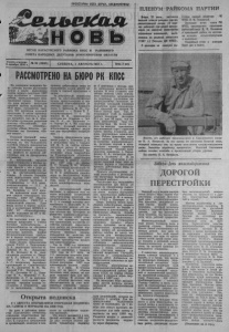 ПРОЛЕТАРИИ ВСЕХ СТРАН, СОЕДИНЯЙТЕСЬ! ОРГАН КАРАСУКСКОГО РАЙКОМА КПСС И РАЙОННОГО СОВЕТА НАРОДНЫХ ДЕПУТАТОВ НОВОСИБИРСКОЙ ОБЛАСТИ ПЛЕНУМ РАЙКОМА ПАРТИИ Газета основана 2 октября 1930 г. РАССМОТРЕНО НА БЮРО РК КПСС На очередном заседании бю ро райкома партии рассмотрен вопрос о срыве выполнения планов первого полугодия 1987 года колхозами и совхозами района, промышленными пред приятиями города. Отмечено, что план первого полугодия продажи молока выполнен на 99,9 проц., государству недо дано 330 центнеров молочной продукции. В целом производ ство молока снизилось к уров ню прошлого года на 2 проц. Большое отставание допустили совхозы «Российский», пло дово-ягодный, «Октябрь», колхозы «Маяк Ильича», им. Жданова, им. Калинина, «Но вая семья». Основной причиной невы полнения полугодового плана явилось то, что большинство хозяйств снизило производство молока. Партийные организа ции, руководители и специали сты хозяйств не приняли дей ственных мер по преодолению отставания. С программой продажи скота государству в первом по лугодии справились все хозяй ства. Вместе с тем в ряде до пущен большой перерасход мя са на внутрихозяйственные нужды. В совхозе Хорошин- ском использовано мяса 15,6 проц, к объему заготовок, в Студеновском — 10,5 проц., плодово-ягодном — 11,1, в колхозах им. Жданова — 19, им. Калинина — 10,7 проц. Не выполнили план освое ния средств генподрядом кол лективы СМУ УС «Новоси- бирскводстрой», СМП-710 и хозрасчетный участок. План ввода жилья в первом полуго дии в коллективах МПМК-2 и СМУ УС «Новосибирсквод- строй» выполнен на 67 и 82 проц, соответствен^. Не выполнен план по реа лизации продукции с учетом поставок молкомбинатом, а пищекомбинатом не обеспечен план по производству безал когольных напитков. Крайне неудовлетворительно сработа ли в первом полугодии райпо и отдел рабочего снабжения. Бюро указало председателю совета РАПО т. Кологривову Д. А., директорам совхозов тт. Диброву И. П., Лановлюку М. И., Вольвачу В. И., пред седателям колхозов тт. Бенде ру Е. Я., Зайцеву В. А., Гер- герту В. А., Баранникову А. С., секретарям партийных организаций тт. Сиротинскому Ю. К., Давиденко В. Н., Па хомовой Г.Ф., Нагорному В. П., Дьяченко И. Д., Кони- сару В. А., Морозову Г. В., Денисенко А. Г. за допущен ный срыв полугодовой про граммы продажи молока го сударству и непринятие мер по ее выполнению, обязало Открыта подписка С 1 АВГУСТА ОТКРЫВАЕТСЯ ОЧЕРЕДНАЯ ПОДПИСКА НА ГАЗЕТЫ И ЖУРНАЛЫ НА 1988 ГОД. На днях в районном агент стве «Союзпечать» состоялось совещание общественных рас пространителей печати- сель ских и городских предприятий и организаций, колхозов и сов № 92 (6983) СУББОТА, 1 АВГУСТА 1987 г. Цена 3 коп. принять действенные меры по выполнению планов девяти ме сяцев и годовой программы в целом. За допущенный перерасход мяса на внутрихозяйственные нужды предупреждены о пер сональной ответственности ди ректора совхозов Хорошин- ского т. Близнюк В. Н., Сту- деновского — т. Бунин В. Т„ плодово-ягодного — т. Ла- новлюк М. И., председатели колхозов им. Жданова т. Зай цев В. А., им. Калинина — т. Гергерт В. А. Им поручено навести должный порядок в использовании мясных ресур сов для внутреннего потребле ния. Указано председателю прав ления райпо т. Клименко Д. В. и начальнику орса т. Садыко вой М. • Е. на слабую органи заторскую работу и неприня тие мер к безусловному вы полнению плана товар