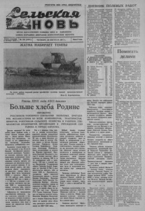ПРОЛЕТАРИИ ВСЕХ СТРАН, СОЕДИНЯЙТЕСЬ! ОРГАН КАРАСУКСКОГО РАЙКОМА КПСС И РАЙОННОГО СОВЕТА НАРОДНЫХ ДЕПУТАТОВ НОВОСИБИРСКОЙ ОБЛАСТИ ДНЕВНИК ПОЛЕВЫХ РАБОТ Газета основана 2 октября 1930 г. ЖАТВА НАБИРАЕТ ТЕМПЫ На полях района широкий размах приобретает косовица главной продовольственной культуры — пшеницы. Фото В. Коробейникова. Решения XXVII съезда КПСС~выполним Больше хлеба Родине ОБРАЩЕНИЕ УЧАСТНИКОВ РАЙОННОГО СОВЕЩАНИЯ ЗВЕНЬЕВЫХ, БРИГАДИ РОВ, МЕХАНИЗАТОРОВ КО ВСЕМ КОМБАЙНЕРАМ, ТРАКТОРИСТАМ, ШОФЕРАМ, РАБОТНИКАМ СЕЛЬСКОГО ХОЗЯЙСТВА И РАБОЧИМ, СПЕ ЦИАЛИСТАМ ПРЕДПРИЯТИЙ, ОРГАНИЗАЦИЙ И УЧРЕЖДЕНИЙ СЕЛ РАЙОНА И ГОРОДА КАРАСУКА. Дорогие товарищи! На полях района зреют хорошие хлеба, а значит пришла главная работа года — уборка урожая. Уборка венчаем труд земледельца, это экзамен на его профессиональ ное мастерство, трудолюбие, преданность хлеборобскому делу. Нынешняя страда особая тем, что она проходит в год 70-летия Великой Октябрьской социали стической революции. Тружени ки колхозов, совхозов, взяв на вооружение интенсивные техно логии выращивания зерновых, кормовых культур, сделали все возможное для получения макси мально высоких урожаев. И нет более важной задачи, чем свое временно убрать выращенное, не допустить потерь зерна и кормов. Дело чести тружеников РАНО — провести уборку за 14 — 18 рабочих дней, продать государству 507 тыс. ц зерна, в т. ч. 100 тыс. ц сильных и цен ных сортов, заготовить под уро жай 1988 г. высококлассные семена, вспахать зябь, запасти достаточное количество кормой. Собравшись на традиционное предуборочное совещание, мы, его участники, заявляем о сво ей готовности активно включить ся в проведение уборочной кам пании, приложить свои опыт и знания для достижения постав ленных задач. № 100 (6991) ЧЕТВЕРГ, 20 АВГУСТА 1987 г. Цена 3 коп. Как и в прошлые годы, мно гие из звеньев механизаторов, водителей приняли повышенные социалистические обязательства. 35 тыс. ц зерна обязалось на молотить звено из колхоза «Но вая семья» в составе Игашева Анатолия Павловича, Огнева Григория Трофимовича, Кауф мана Александра Яковлевича. Звено кукурузоводов из колхоза им. Жданова (звеньевой Боро денке Анатолий Иванович) в сос таве 6 человек наметило убрать силосные на площади 700 га за 15 календарных дней и намо лотить 120 тыс. ц зеленой мас сы. Механизатор Студеновского совхоза Герингер Андрей Андре евич на тракторе К-700 А взял обязательство вспахать зяби не менее 1500 га. Комсомольско молодежное звено водителей Калачинского совхоза в составе Бендера Александра, Фрицлера Александра, Гехта Николая, Ли- ценбергера Виктора обязалось ежедневно выполнять наряды на перевозке на 250 — 300 проц, и сделать за период уборки не ме нее 340 тыс, т-км. Водители РТП Гидяон Александр Яковле вич на вывозке силосной массы, Каштанов Владимир Владимиро вич и Анакон Александр Михай лович на вывозке зерна обяза лись выполнять ежедневные за дания на 200 — 250 проц, ( Добрый пример трудовых коллективов, ветеранов произ водства, добросовестных труже ников заслуживает одобрения и широкой поддержки, зовет на борьбу за своевременное и ка чественное проведение убороч ных работ. Понимая важность и ответственность текущего перио да, мы призываем всех участни ков уборочной страды активно включиться в соревнование за достижение наивысшей произво дительности, своим ударным трудом приу