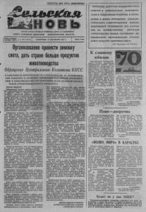 НАРОДНЫЕ ДЕПУТАТЫ! ПОВЫШАЙТЕ РОЛЬ ПРОЛЕТАРИИ ВСЕХ СТРАН, СОЕДИНЯЙТЕСЬ! ОРГАН КАРАСУКСКОГО РАЙКОМА КПСС И РАЙОННОГО СОВЕТА НАРОДНЫХ ДЕПУТАТОВ НОВОСИБИРСКОЙ ОБЛАСТИ ДЕНИИ В ЖИЗНЬ ПРИНЦИПОВ СОЦИАЛИ СТИЧЕСКОГО САМОУПРАВЛЕНИЯ НАРОДА! Газета основана ѵ I 2 октября 1930 г. 128 (7019) Организованно провести зимовку скота, дать стране больше продуктов животноводства Обращение Центрального Комитета КПСС К РАБОТНИКАМ ЖИВОТНОВОДСТВА,СПЕЦИАЛИСТАМ И РУКОВОДИТЕ ЛЯМ колхозов И СОВХОЗОВ, ПЕРВИЧНЫМ ПАРТИЙНЫМ, ПРОФСОЮЗ НЫМ И КОМСОМОЛЬСКИМ ОРГАНИЗАЦИЯМ, ВСЕМ ТРУДОВЫМ КОЛЛЕК ТИВАМ АГРОПРОМЫШЛЕННОГО КОМПЛЕКСА Дорогие товарищи! Центральный Комитет партии высоко оцени вает самоотверженный труд животноводов. Пос ле майского (1982 г.) Пленума ЦК вашими усилиями, энергичной работой обеспечивает ся ежегодный рост производства необходимой стране продукции. И очень важно в год 70-ле- тия Великого Октября не только сохранить достигнутое, но и приумножить результаты, дать к столу советских людей как можно боль ше мяса, молока, яиц. Это будет вашим вкла дом в решение поставленной июньским (1987 г.) Пленумом ЦК КПСС задачи — в короткие сроки обеспечить значительное улучшение про довольственного снабжения. Совершенно очевидно, что для достижения этой цели каждому работнику животноводче ской бригады, фермы, специалисту, руководи телю хозяйства необходимо проявить макси мум инициативы и настойчивости, трудиться с полной отдачей. Особенно важно сейчас приба вить в работе животноводческим подразделе ниям тех хозяйств, где в последние месяцы было допущено снижение продуктивности ферм. Предстоящая зимовка будет нелегкой, об этом-надо сказать со всей прямотой и откро венностью. На это обязаны ориентироваться в своей работе партийные, профсоюзные, комсо мольские организации, советские, агропромыш ленные органы, прежде всего в тех хозяйствах и районах, где фермы не обеспечены в достат ке грубыми и сочными кормами необходимого качества. Государство оказывает и будет ока зывать нужную помощь хозяйствам, постра давшим от стихии. Нельзя согласиться с тем, что многие фермы по существу не готовы к работе в зимних ус ловиях, не налажено кормоприготовление, а главное — не созданы необходимые условия Для высокопроизводительной работы. При всех сложностях с завершением полевых работ к заготовке кормов нельзя ослаблять внимание. Все, что пригодно на фуражные цели, должно быть собрано, учтено и пущено в дело. Успеш ному проведению зимовки на фермах должна способствовать хорошо отлаженная работа кор моцехов, обеспечивающая эффективное исполь зование каждого килограмма корма, высокую окупаемость его продукцией. Партийные организации, органы агропрома, руководители, специалисты хозяйств обязаны глубоко и всесторонне проанализировать поло жение дел на каждой ферме, обеспечить широ. кое внедрение передового опыта, по-деловому организовать профессиональную и экономиче скую учебу. Успех дела решают люди. Прежде всего от работы доярок и скотников, телятниц и сви нарок, чабанов и птичниц, фуражиров и слеса рей-наладчиков в конечном итоге зависит успешное проведение зимовки скота, а значит, и результаты всей работы отрасли как в теку щем, так и в будущем году. Ваше, товарищи, отношение к работе, высо кая организованность и дисциплинированность, стремление подойти к делу творче