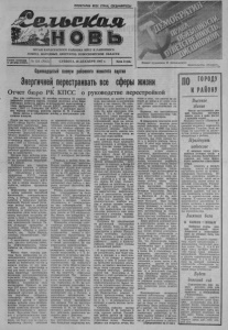 ПРОЛЕТАРИИ ВСЕХ СТРАН, СОЕДИНЯЙТЕСЬ! ОРГАН КАРАСУКСКОГО РАЙКОМА КПСС И РАЙОННОГО СОВЕТА НАРОДНЫХ ДЕПУТАТОВ НОВОСИБИРСКОЙ ОБЛАСТИ Газета основана 2 октября 1930 г. № 154 (7045) СУББОТА, 26 ДЕКАБРЯ 1987 г. Цена 3 коп. Плакат художника И. Когановского Издательство «Плакат». Одиннадцатый пленум районного комитета партии Энергичней перестраивать все сферы жизни Отчет бюро РК КПСС о руководстве перестройкой Как уже сообщалось, 22 декабря состоялся XI пленум районного комитета партии, который заслушал отчет бюро районного комитета партии по руководству перестройкой в свете требований XXVII съезда КПСС, январского, июнь ского (1987 г.) Пленумов ЦК КПСС. С докладом высту пил первый секретарь райкома партии И. Ф. Головатый. Ниже дается в сокращении доклад и выступления уча стников пленума. Почти два года прошло после XXVII съезда партии, который всесторонне разработал выд винутый апрельским (1985 г) Пленумом ЦК КПСС курс на ускорение социально-экономи. ческого развития, революцион. ное обновление общества. Со стоявшиеся январский, июнь ский (1987 г.) Пленумы Цент рального комитета партии теоретически обосновали и раз работали дальнейший курс пар. тир на перестройку. Сегодня бюро райкома отчи тывается о проделанной рабо те по руководству перестрой кой в районе. Используя все средства партийного влияния, в районе развернули широкую пропаган ду, разъяснение и изучение материалов XXVII съезда КПСС, последующих Пленумов ЦК КПСС. Стремились дойти до ума и сердца каждого ком. муниста, каждого труженика района. Перестройка прочно входит в жизнь районной партийной организации, совершенствует стиль и методы работы бюро райкома и первичных партор ганизаций. Принят новый регла. мент работы бюро и аппарата райкома. Для осуществления контроля за принятыми поста новлениями стали чаще исполь. зовать выездные заседания от делов и бюро с подробным анз. лизом положения дел и оказа ния практической помощи. Та. кие заседания проведены в колхозах «Маяк Ильича», им. Мичурина, «Вперед к комму низму», им. Карла Маркса, совхозах «Калачинский», «Хо. рошинский». О выполнении решений вто рого, шестого пленумов райко. ма информировались члены райкома на„ очередных заседа ниях. Работа бюро, отделов рай кома была направлена на ор ганизационное укрепление пер. вичных парторганизаций, повы шение их боевитости, так как в первую очередь от них зави сит, как пойдет перестройка в том или ином коллективе. Соз- ’ даны первичные • организации ремзавода, ремтехпредприятия, агроснаба, объединены после реорганизации МПМК-1 и МПМК-2, коммунисты этих коллективов. Принято за два года 207 новых членов партии, прием в большинстве партор ганизаций проходил на откры тых партийных собраниях. Атмосфера многих собраний становится другой. У многих членов райкома стало исчезать чувство безразличия к прове дению пленумов, больше стало заинтересованности и делови тости.. Заседания бюро прохо. дят в доброжелательном тоне. Самокритично нужно при знать, что бюро еще не удалось отработать систему контроля за принимаемыми постановле. ниями, хотя количество их зна чительно сокращено. Объясни, ется это главным образом тэм, что по вине членов бюро, сек ретарей Головатого И. Ф., Хильченко А. К., Столбинской Н. М. в отделах райкома нет целенаправленной, кропотливой работы по этому важнейшему вопросу. Нередки случаи, ког. да пос