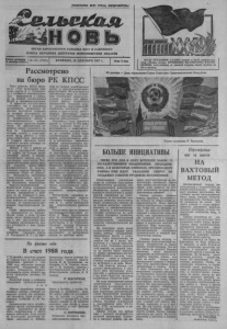 ПРОЛЕТАРИИ ВСЕХ СТРАН, СОЕДИНЯЙТЕСЬ! № 155 (7045) ВТОРНИК, 29 ДЕКАБРЯ 1987 г. Цена 3 кои. ИЛИП Рассмотрено Газета основана 2 октября 1930 г ОРГАН КАРАСУКСКОГО РАЙКОМА КПСС И РАЙОННОГО СОВЕТА НАРОДНЫХ ДЕПУТАТОВ НОВОСИБИРСКОЙ ОБЛАСТИ § ФЛАГ ТРУДОВОЙ СЛАВЫ поднят в честь доярки кол Я § хоза «Новая семья» КРИВЕНКО ЕКАТЕРИНЫ Ф | § ПОВНЫ, получившей от каждой коровы своей группы по § 8 30 ц молока. ° Сюооооооооооооооооорооооооооооооооооооооооооооооооооооооооооооооооооооооооооооооои на бюро Бюро райкома КПСС заслу шало отчет начальника отде ления дороги Б. С. Голоднико- ва о готовности железнодорож ных предприятий к перехо ду на полный хозяйственный расчет и самофинансирование. В принятом постановлении отмечается, что в партийных организациях проводятся от крытые партийные собрания, на которых обсуждаются во просы готовности к переходу на хозяйственный расчет и самофинансирование, избира ются советы трудовых коллек тивов. На предприятиях от деления дороги проводится ра бота по совершенствованию системы оплаты и стимулиро вания труда рабочих и ‘ инже нерно-технических работников. В условиях неполного хозяй ственного расчета работают ли нейные предприятия. Вместе с тем в работе по переводу предприятий отделе ния дороги на полный хозяй ственный расчет и самофи нансирование имеется ряд су щественных недостатков. Вну трихозяйственный расчет даль ше участков, цехов своего распространения не получил, плановые задания бригадам по элементам затрат не доводят ся. Экономисты, начальники у четно-контрольных групп на предприятиях этими вопроса ми занимаются недостаточно. Планово-экономический и финансовый отделы отделения дороги не стали во главе, под готовки предприятий к пере воду их на хозрасчет-и само финансирование. Специалисты этих отделов не оказывают им помощь, не контролируют про ведение подготовительной ра боты. Слабо организована работа на предприятиях по экономи ческой учебе, в ряде случаев имеет место формальный под ход к ней, недостаточно под готовлены пропагандисты, низ кая активность и явка слуша телей. Бюро определило работу ру ководства отделения дороги (т. Голодников Б. С.) по пере- На финише года В счет 1988 года С 22 декабря, выполнив досроч. но годовой план по реализации продукции, работает в счет 1988 года коллектив полигра фического объединения «Ку- лунда». Повысилась произво дительность труда, прирост вы пуска продукции составил 3,5 процента. Заметный вклад в успешное завершение производственной • • < Многие труженики плодово. ягодного совхоза успешно за вершают второй год двенадца. той пятилетки. Один из них — водитель КАМАЗа А. Ф. Бо женко. Значительная часть хозяйст венных грузов, доставляемых в совхоз, приходится на долю этого старательного и неуто мимого работника. Куда только не выписывает диспетчер пу тевки Анатолию; в Новосй- РК КПСС ходу на полный хозяйственный расчет и самофинансирование недостаточной. Обязало принять действенные меры по устране нию отмеченных недостатков, создать условия для эффек тивной работы коллективов предприятий отделения доро ги, развития самоуправления, воспитания хозяйского отно шения к производству, всесто роннего применения закона СССР о государственном пред приятии (объединении). Партийному бюро отделения дороги (т. Ковтун В. И.) пред ложено повысить спрос и от ветственность с к