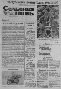 С наступающим Новым годом, товарищи! ПРОЛЕТАРИИ ВСЕХ СТРАН, СОЕДИНЯЙТЕСЬ! ОРГАН КАРАСУКСКОГО РАЙКОМА КПСС И РАЙОННОГО СОВЕТА НАРОДНЫХ ДЕПУТАТОВ НОВОСИБИРСКОЙ ОБЛАСТИ Газета основана 2 октября 1930 г. № 156 (7047) ЧЕТВЕРГ, 31 ДЕКАБРЯ 1987 г. Цена 3 жоп С ДОБРОЙ НАДЕЖДОЙ Стремительно летит время в наш век, который мы называем то атомным, то космическим, то компьютерным. И справедливо, выделяя, правда, лиш ь одну сторону нашей многообразной жиз ни. Теперь мы вступили в более интересное и сложное время — время бурной демократизации нашего общества после длитель ного застойного периода, время коренных экономических ре форм. И на пороге Нового года резонно будет спокойно проанализи- ровать, что же за истекший год сделано, что упущено, над чем особенно напряженно нужно будет трудиться в третьем году пя тилетки. Первое слово скажем о тех, кто нас кормит и поит — о тру жениках села, работниках агропрома. Много доброго, сердеч ного заслужили полеводы района, прежде всего хлеборобы, со бравшие хороший урожай и перевыполнившие план сдачи зерна государству, положившие в кассы хозяйств сотни тысяч рублей прибыли. Особой похвалы заслуживают земледельцы колхозов «Новая семья», им. Карла Маркса, выполнившие более трех за два года планов по зерну. Пожелаем же от души поле водам района в новом году доброй погоды, богатых урожаев, быть каждому настоящим хозяином на своей земле. Сложнее дела у тружеников животноводства. Если работники мясного цеха и овцеводства успешно справились с планом про дажи скота и шерсти, то дояркам и скотникам дойных гуртов для выполнения плана 1987 года не хватало нескольких дней. Думается, что с первого дня третьего года пятилетки они будут настойчиво бороться за максимальное получение столь необхо* димой всем ценной продукции. Борьба сельчан за увеличение продукции полей и ферм с наименьшими затратами жизненно необходима еще и потому, что с завтрашего дня совхозы и Колхозы переходят на полный хозрасчет, самоокупаемость и самофинансирование. Добрым примером здесь может служить опыт работы колхозов «Новая семья», им. Карла Маркса, совхозов Калиновского, Калачинского и «Российский», получивших наибольшую прибыль как в целом, так и на одного человека. Карасучане ждут от работников перерабатывающих предприя тий, прежде всего от молкомбината, мясо-и пищекомбинатов, а также от торговли, бытовиков, деятельность которых непо средственно затрагивает интересы каждого человека, — больше инициативы, напора в работе, чтобы они порадовали в новом году дополнительным выпуском продукции, товаров широкого потребления, новыми услугами. Немало сделано работниками просвещения и здравоохранения, но гораздо больше предстоит сделать в новом году. , В новых условиях хозяйствования начнут трудиться желез нодорожники, строители, автомобилисты и связисты. По многим показателям они успешно завершили год, а по некоторым важ ным и не справились, например, работники отделения дороги, автомобилисты. Это налагает на них особую ответственность. Благотворное влияние на улучшение дел должен оказать Закон о госпредприятии, вступающий с 1 января в силу. С добрыми надеждами на более прочный мир входим мы в новый год. Ведь 1987 год ознаменовался подписанием между СССР и США Договора об уничтожении ракет средней и мень шей дальности. С твердой уверенностью смотр